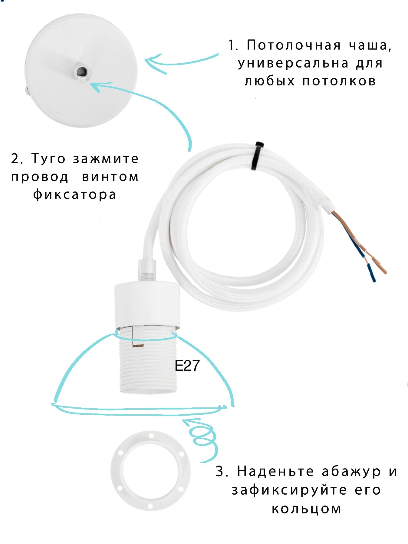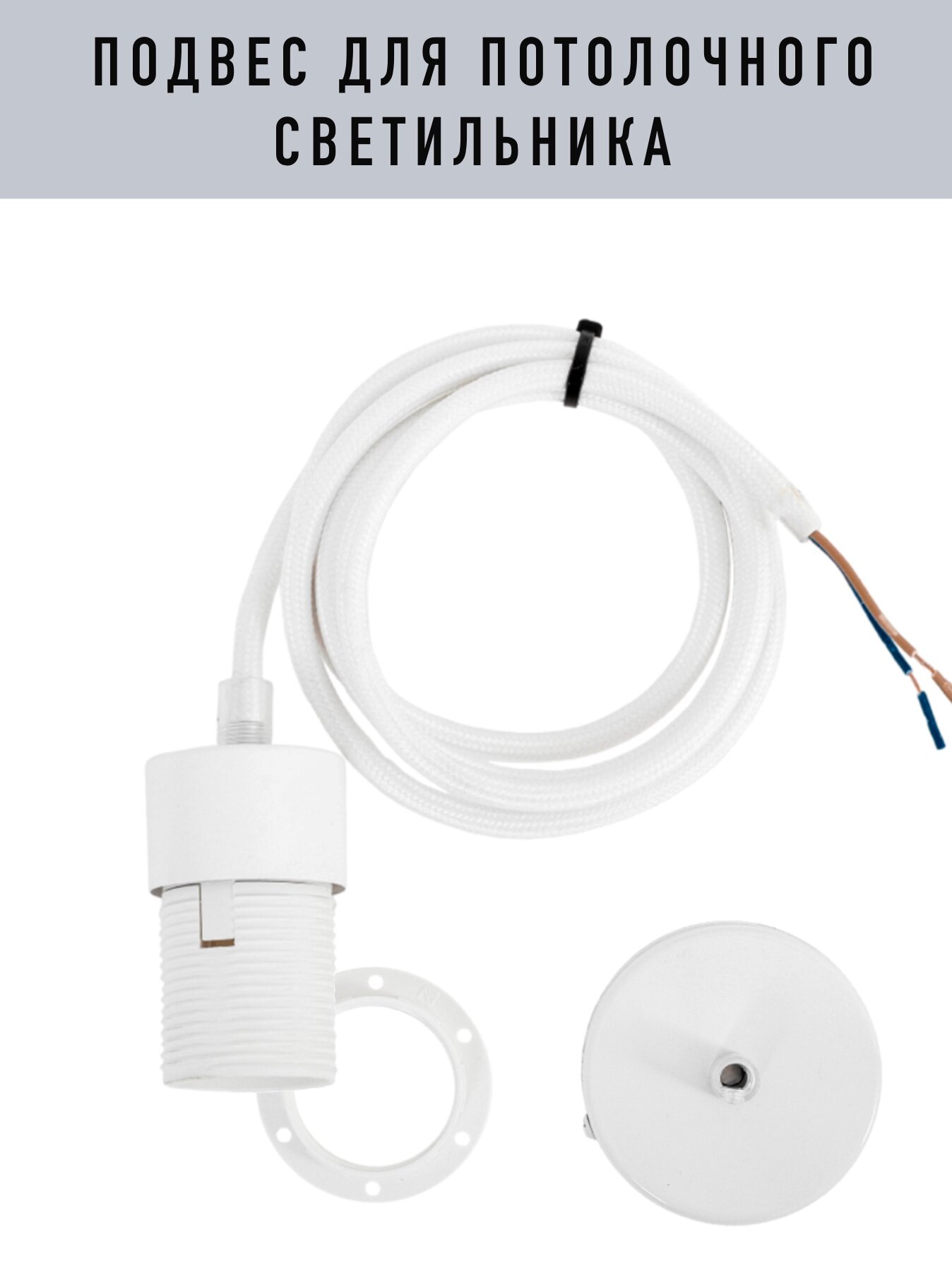 Шнур подвес с регулируемой длиной с патроном Е27, белый
