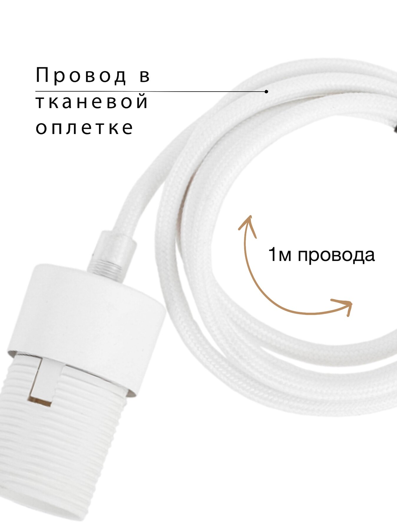 Шнур подвес лофт с патроном Е27, белый матовый