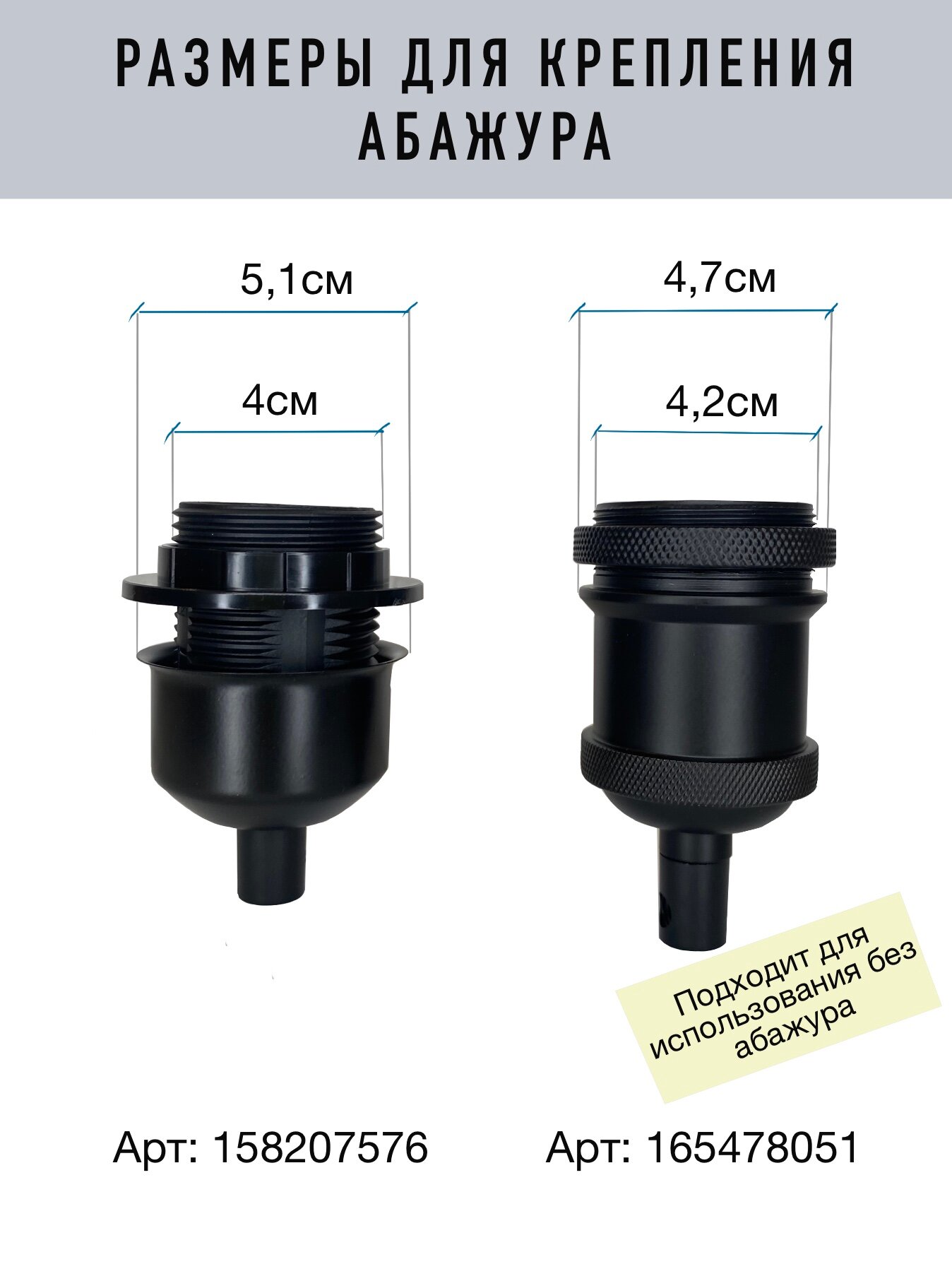 Шнур подвес с регулируемой длиной с патроном Е27, черный