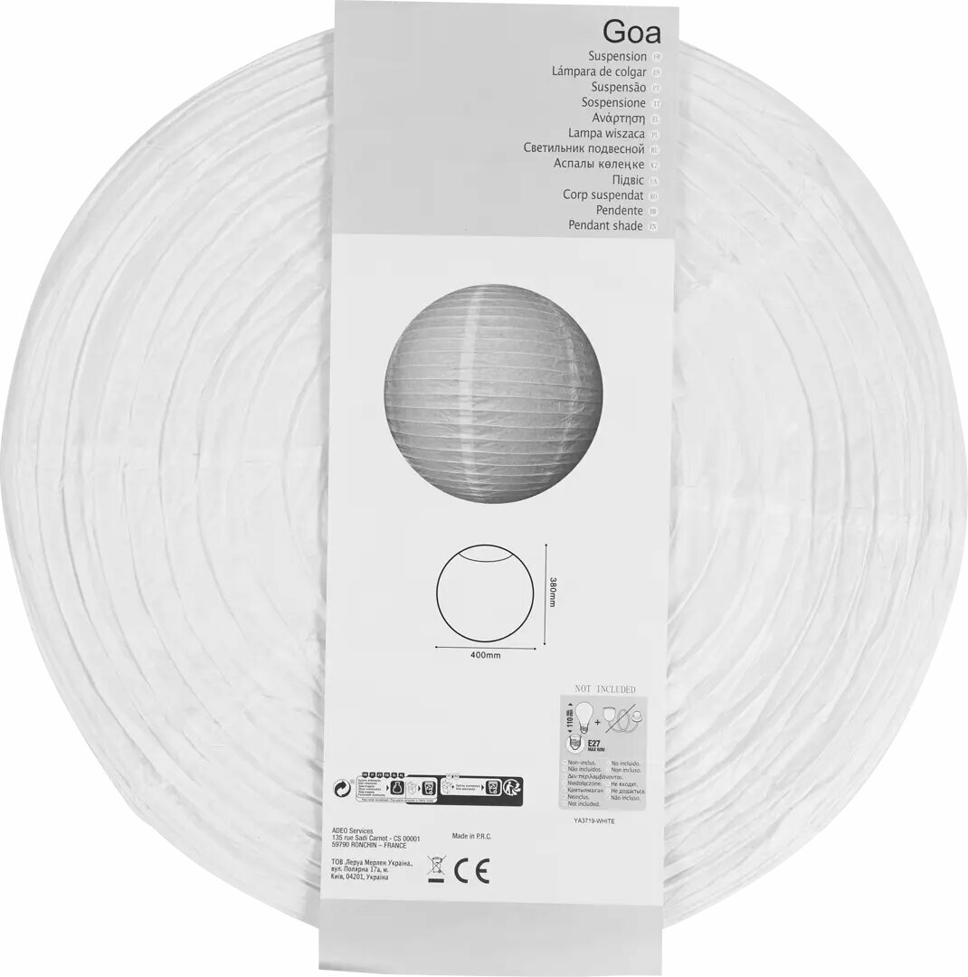 Купить Абажур Goa ТОП1000 E27 бумажный цвет белый 40 см