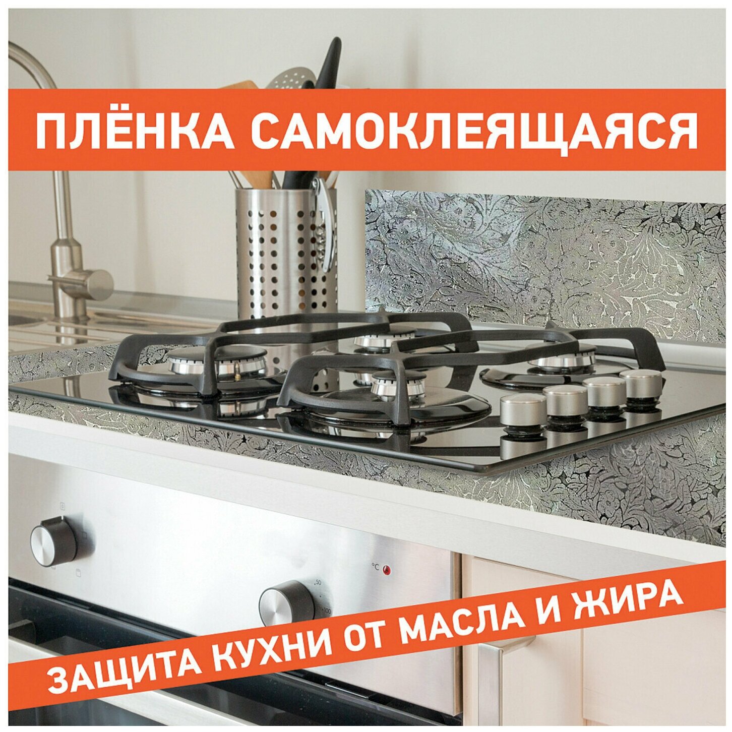 Самоклеящаяся / самоклеющаяся защитная алюминиевая пленка / фольга / защитный экран для кухни / плиты от брызг 0,6х3 м, серебро, узор, Daswerk