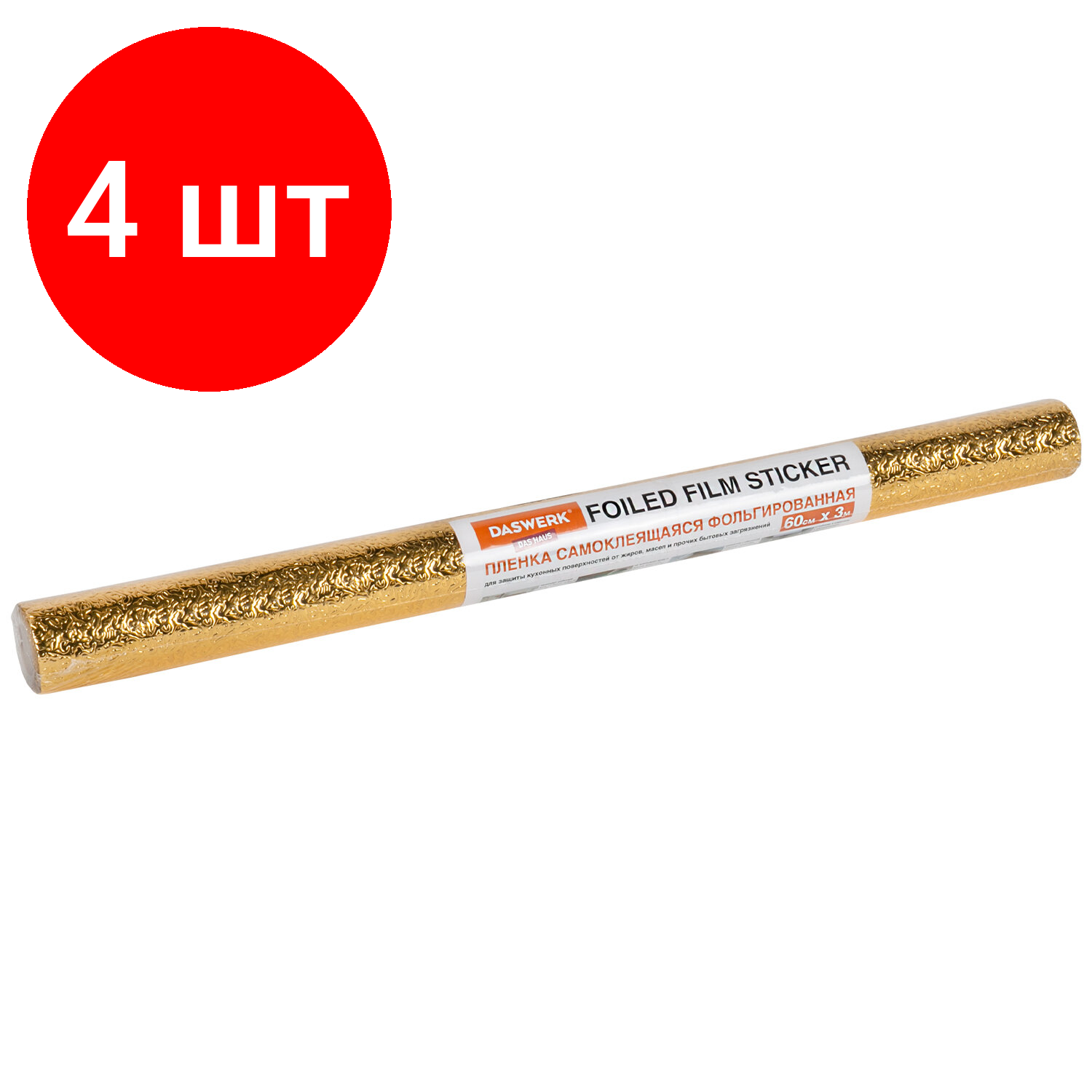 Купить Комплект 4 шт, Самоклеящаяся пленка, алюминиевая фольга защитная для кухни/дома, 0.6х3 м, золото, узор, DASWERK, 607847