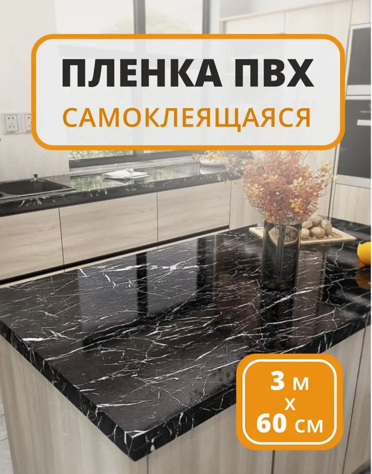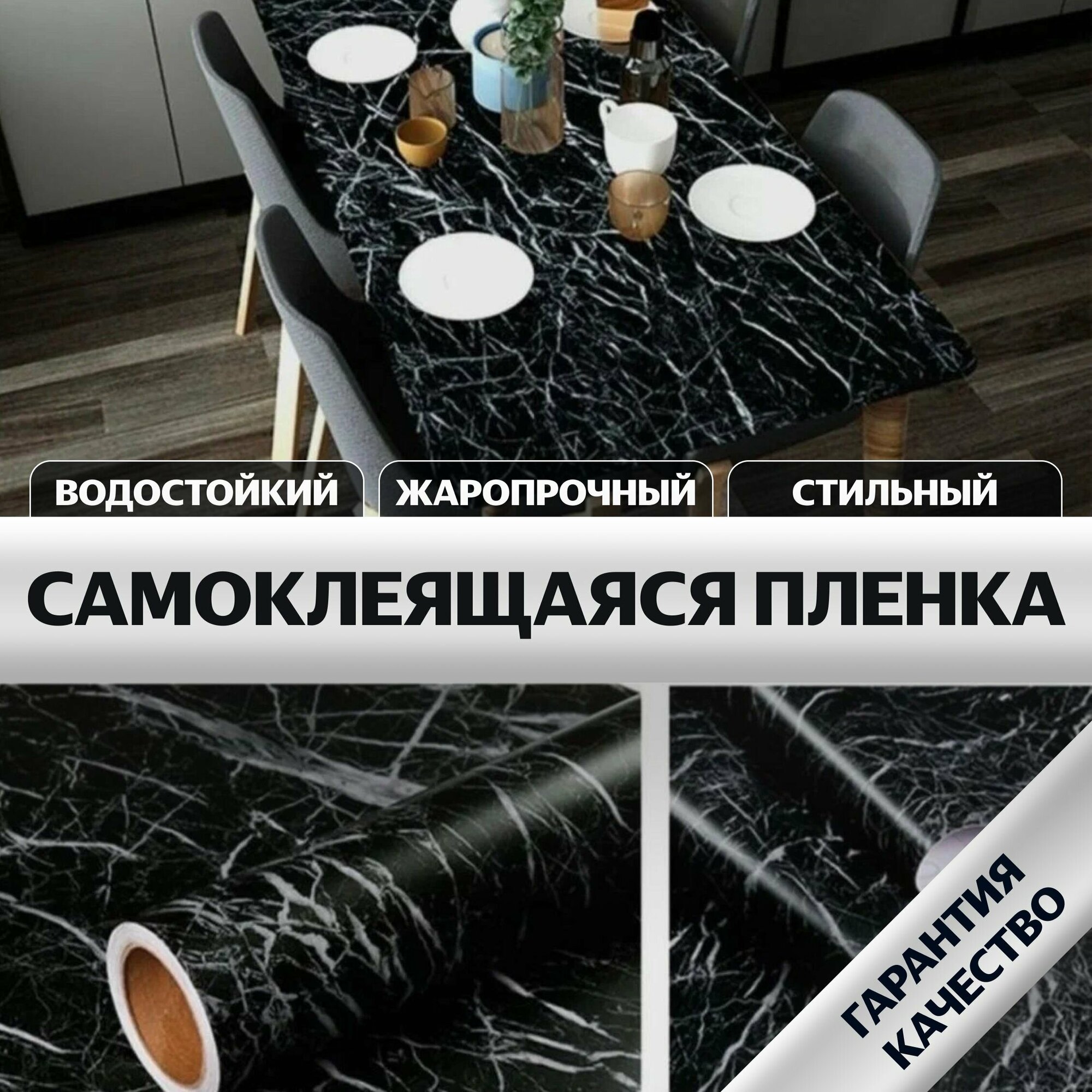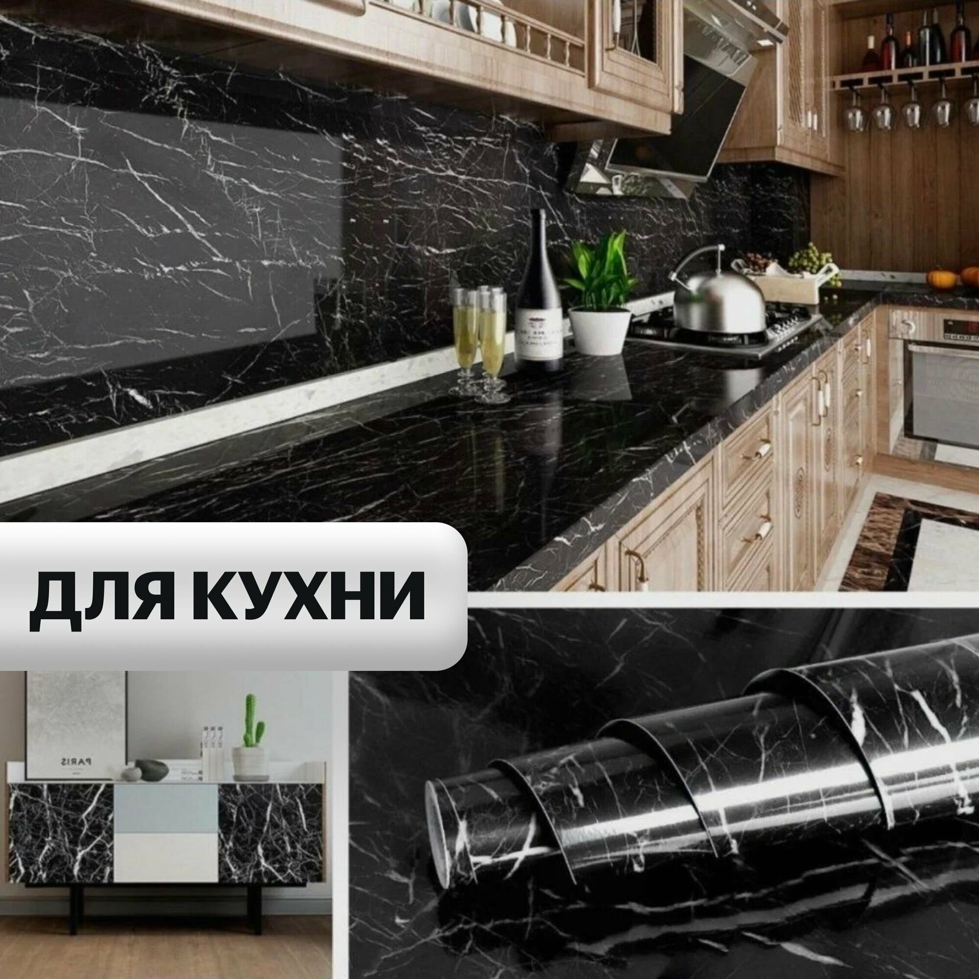 Самоклеящаяся защитная пленка для кухни и мебели Черный мрамор, 60смх3м интересное: