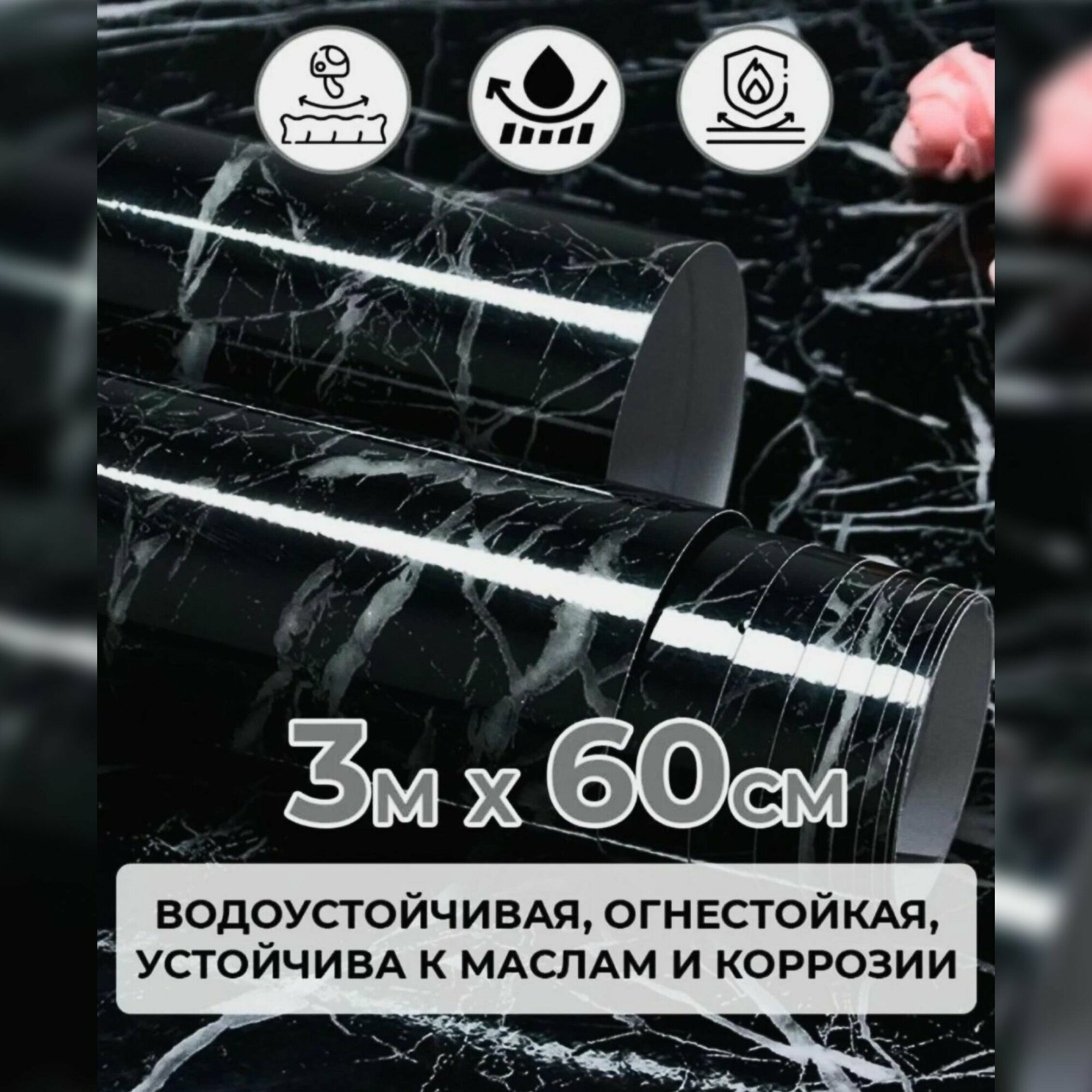"Черная" мраморная самоклеящаяся защитная плёнка для кухни и ремонта мебели, ширина 60 см, рулон 3 м
