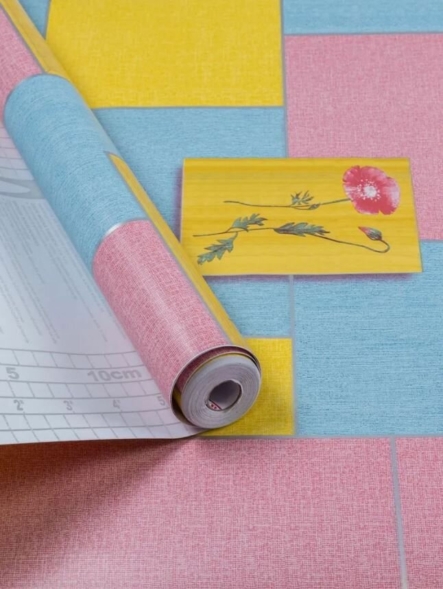 Пленка самоклеящаяся 45см* 8м №8182 цветная плитка с цветами