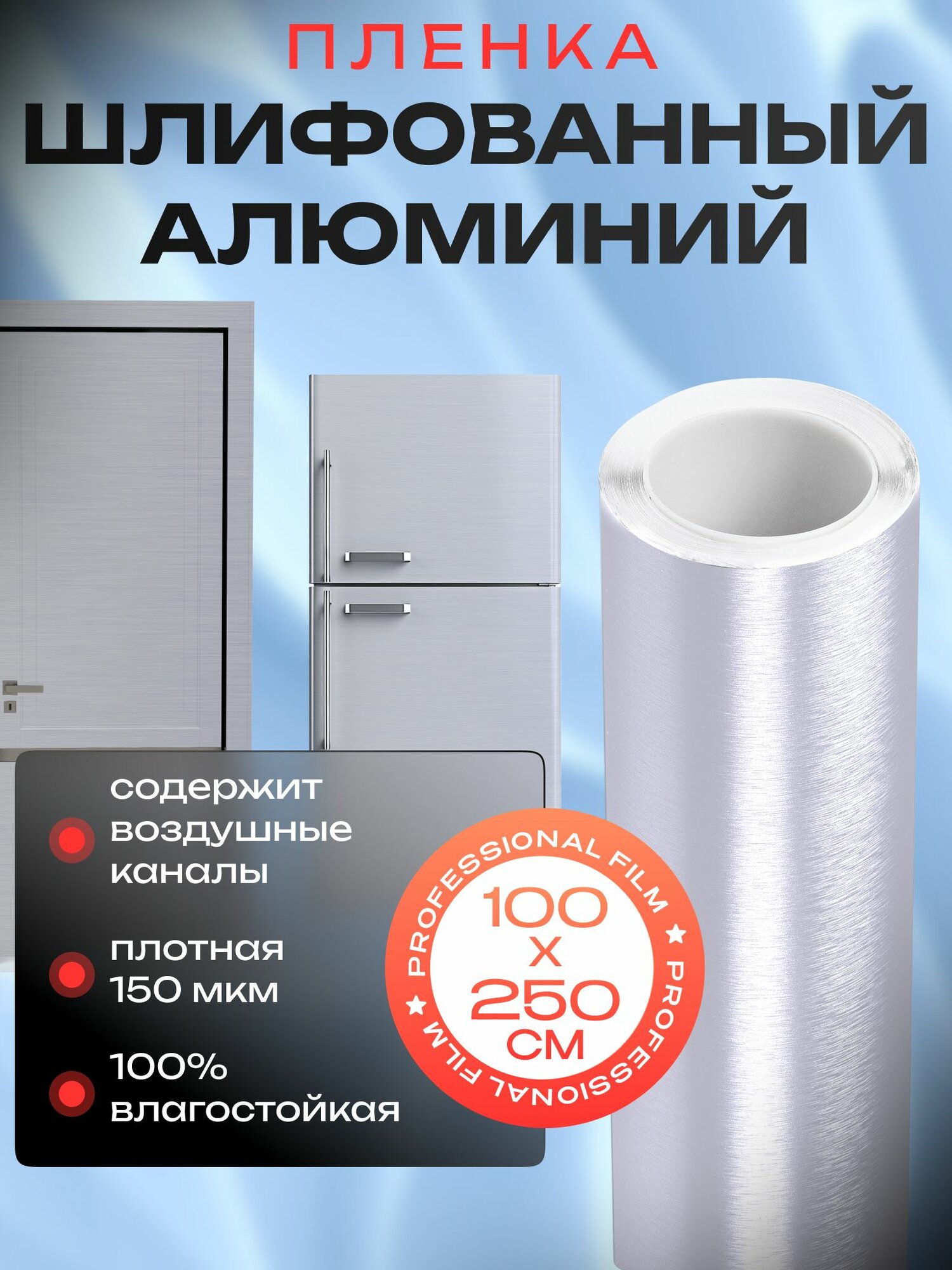 Самоклеющаяся пленка на холодильник. Винловая пленка шлифованный алюминий- 50х200см. Цвет: серебро
