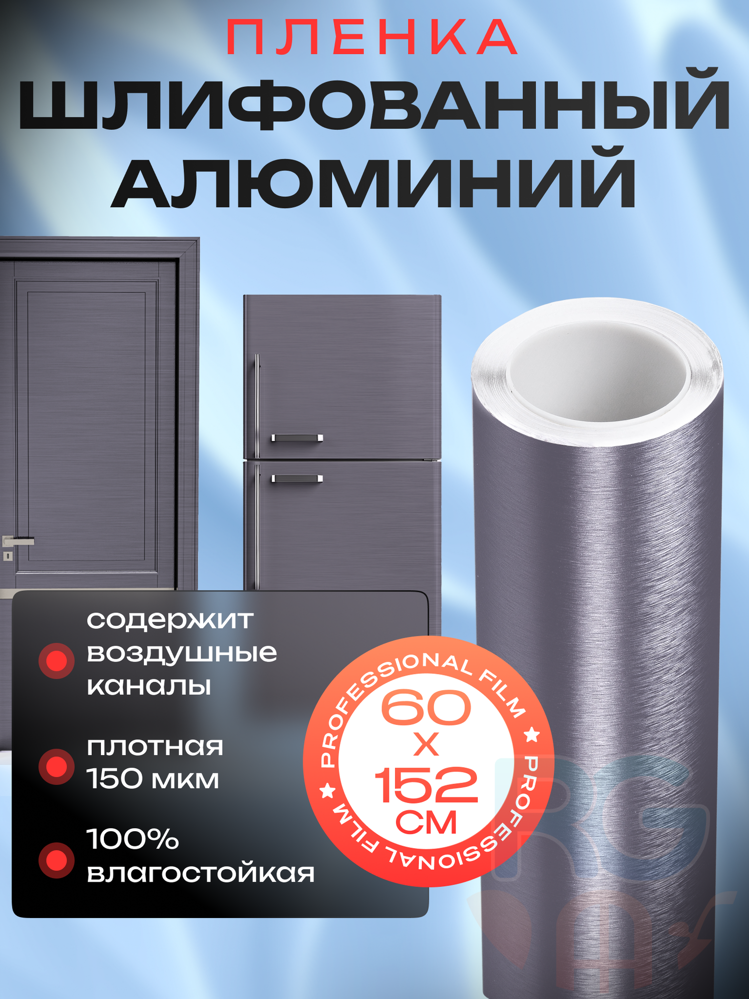 Самоклеющаяся пленка для кухни. Пленка на дверь самоклеющаяся шлифованный алюминий 100x152 см, цвет: серый