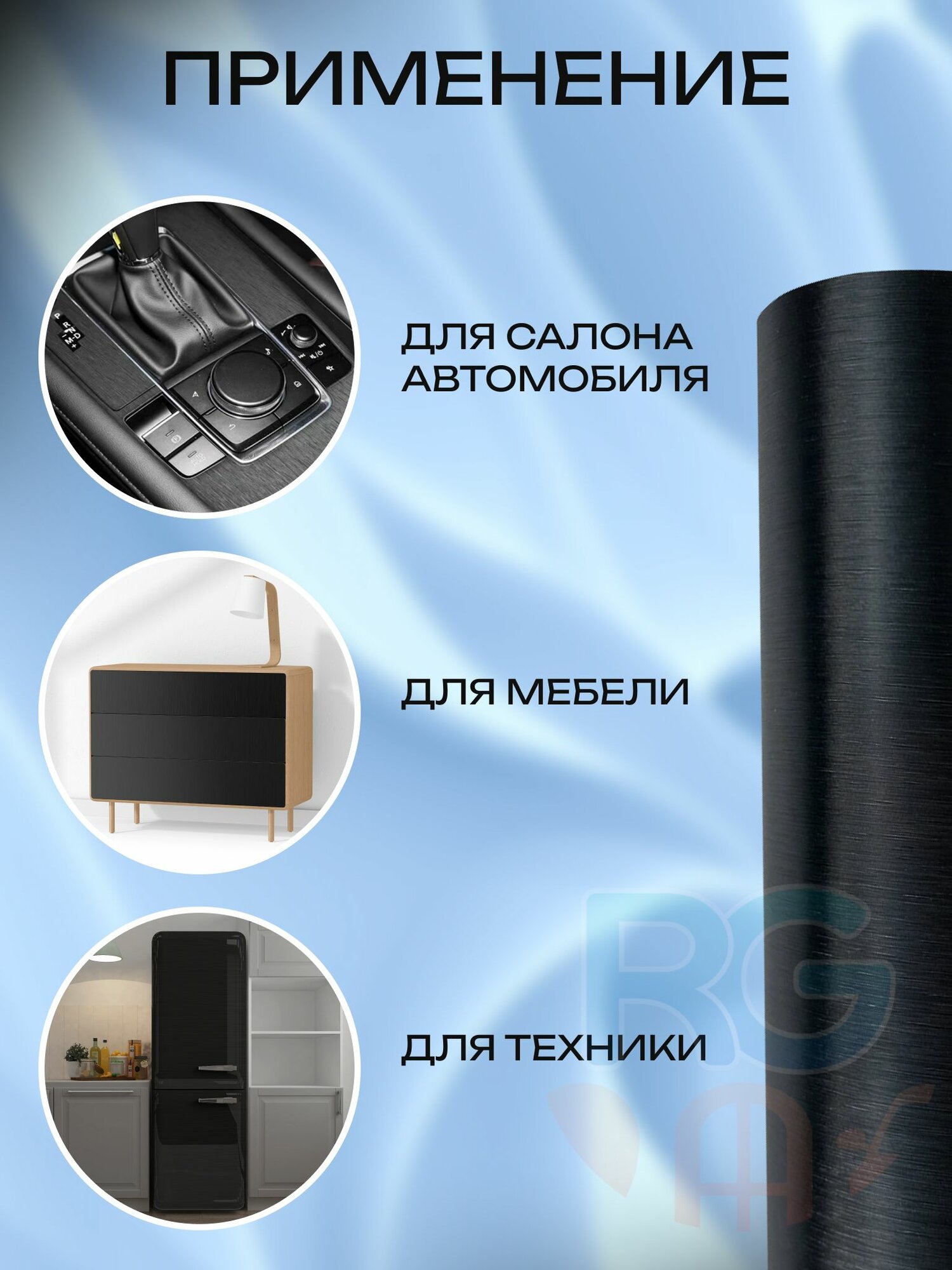 Плёнка пвх. Черная пленка для авто шлифованный алюминий самоклеящаяся 152х50см. Цвет: черный