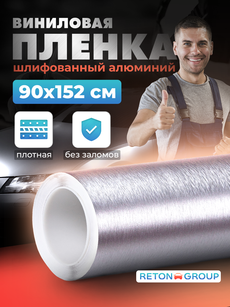 Пленка самоклеящаяся для авто. Пленка для автомобиля виниловая шлифованный алюминий 152х30см. Цвет: серебристый