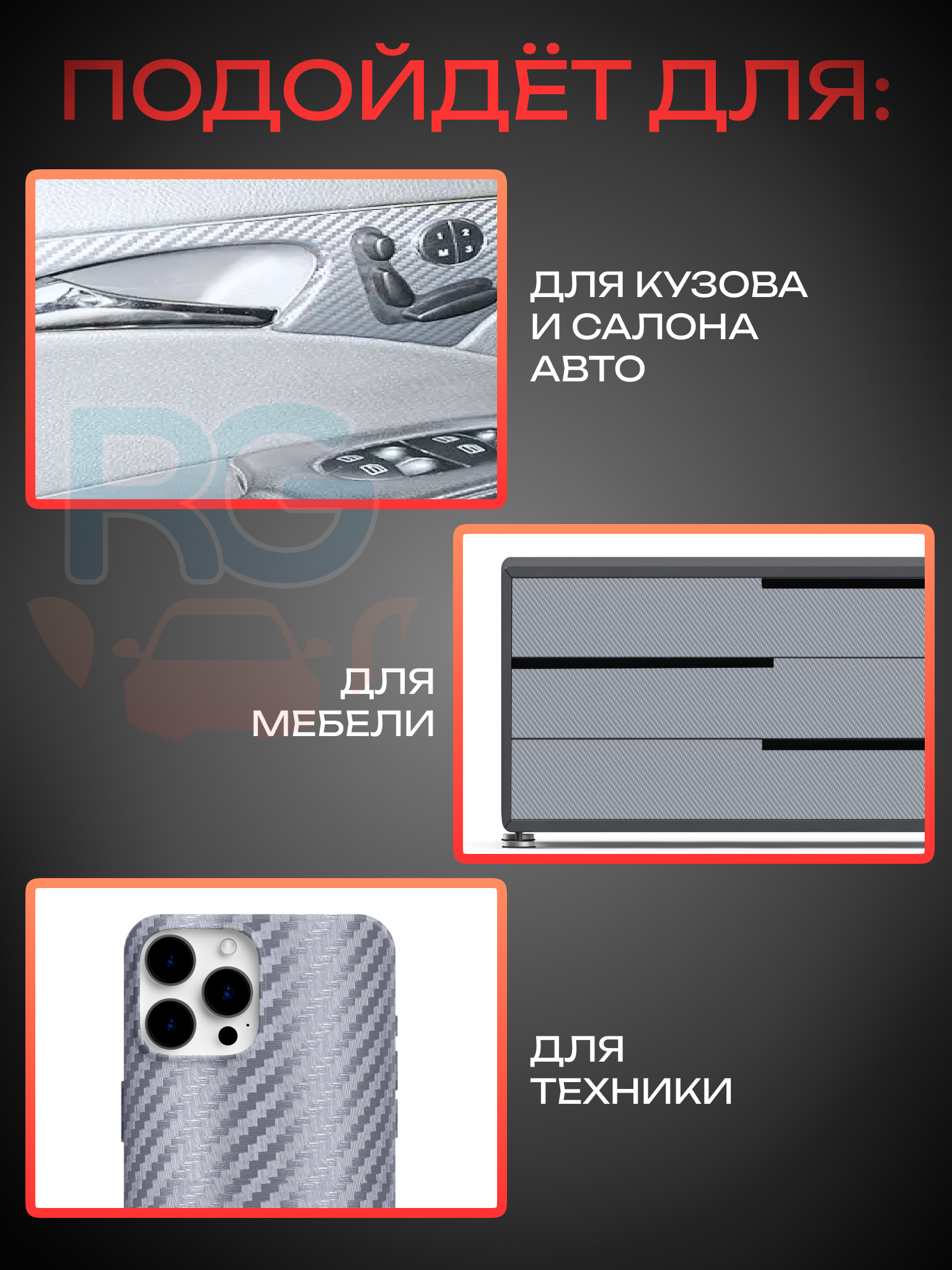 3D карбон пленка для мебели самоклеющаяся , цвет серебристый 90х152 см