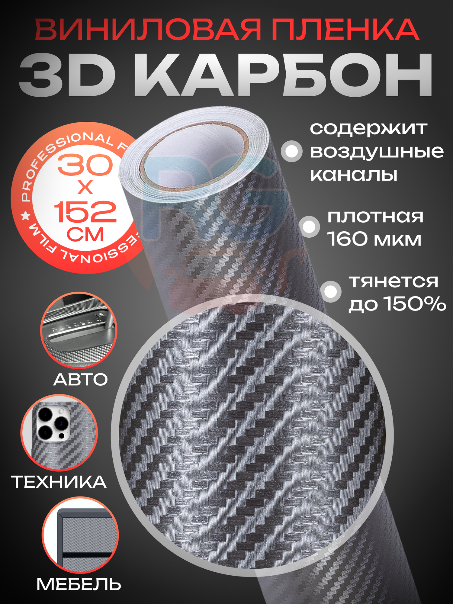 Виниловая пленка 3D карбон. Пленка самоклеющаяся карбоновая для автомобиля. Защитное матовое покрытие 30х152см