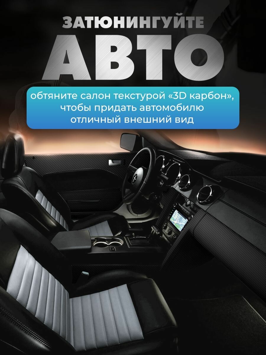 Виниловая пленка 3D карбон. Пленка самоклеющаяся карбоновая для автомобиля. Защитное матовое покрытие 30х152см