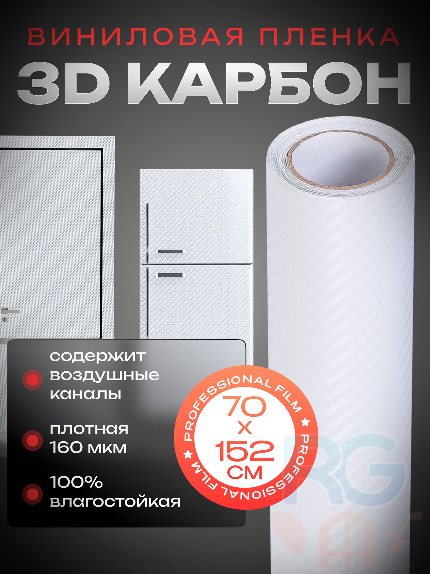 Виниловая пленка 3D карбон. Пленка самоклеющаяся карбоновая для автомобиля. Защитное матовое покрытие 30х152см