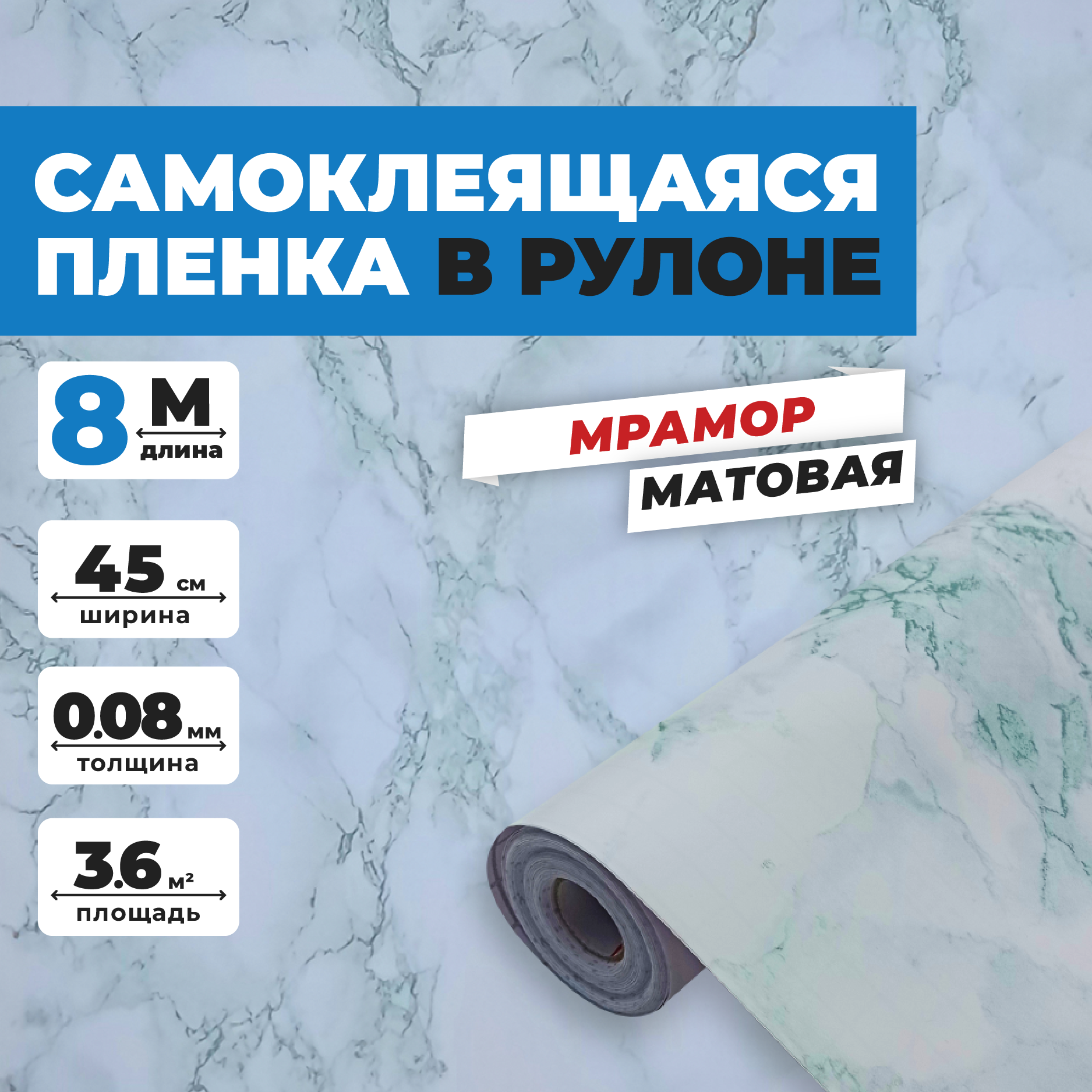 Самоклеящаяся пленка для мебели и кухни 0,45х8 метров, EaZZY BEST, под мрамор