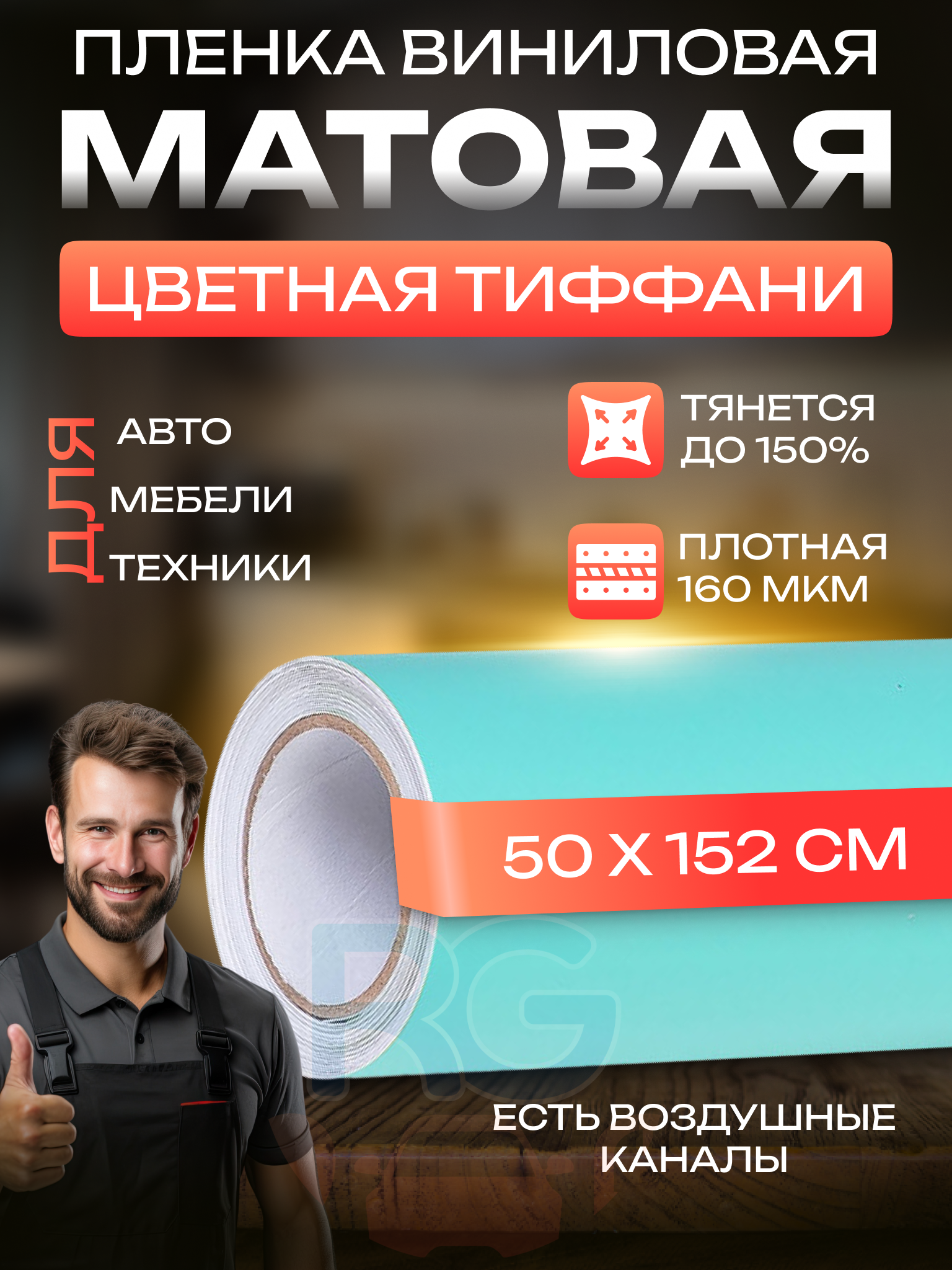 Пленка самоклейка. Автомобильная пленка матовая, тюнинг для авто: 60х152 см, цвет: тиффани