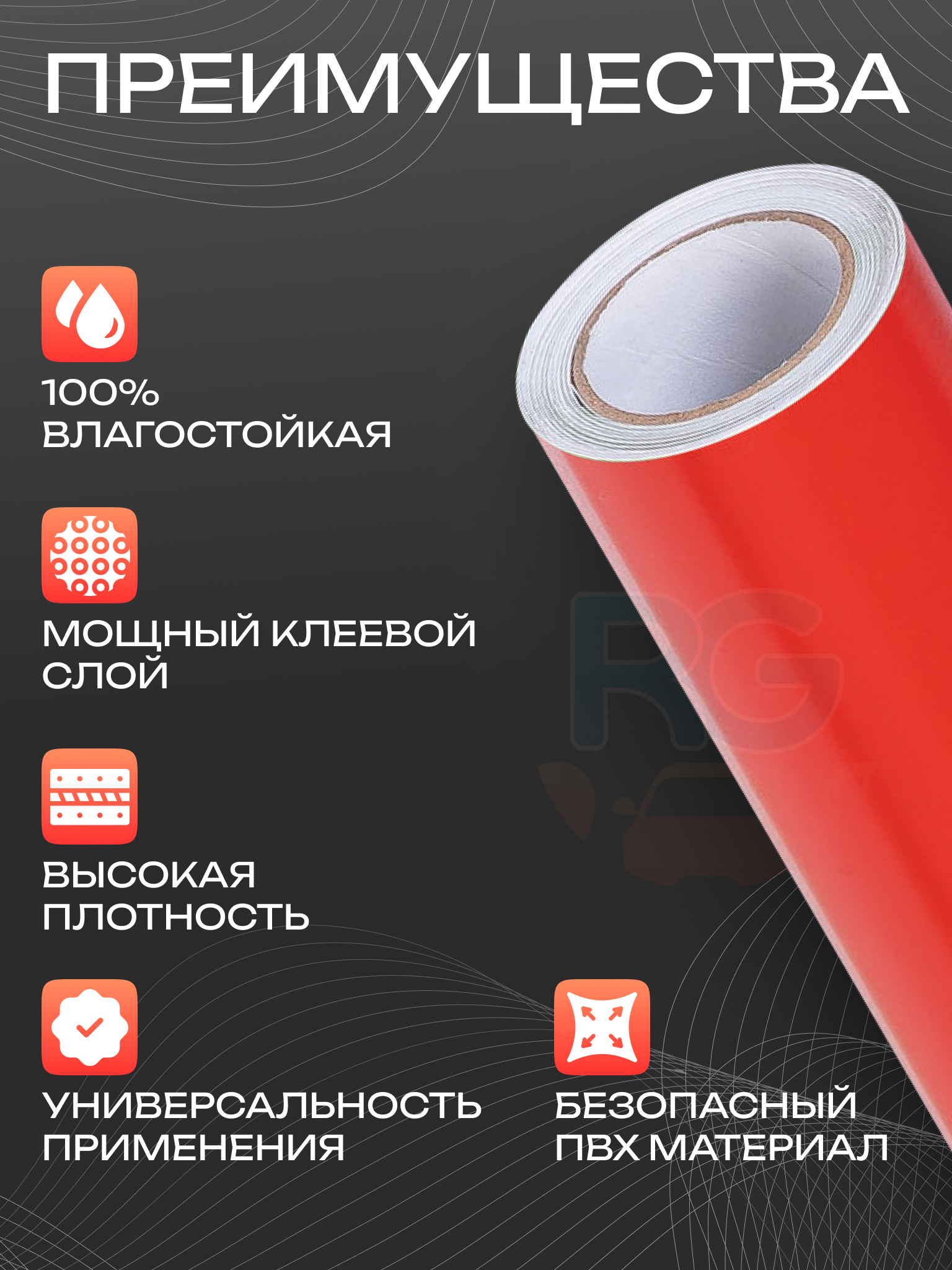 Пленка самоклеющаяся для авто. Виниловая пленка автомобильная: 80х152 см, цвет: красный