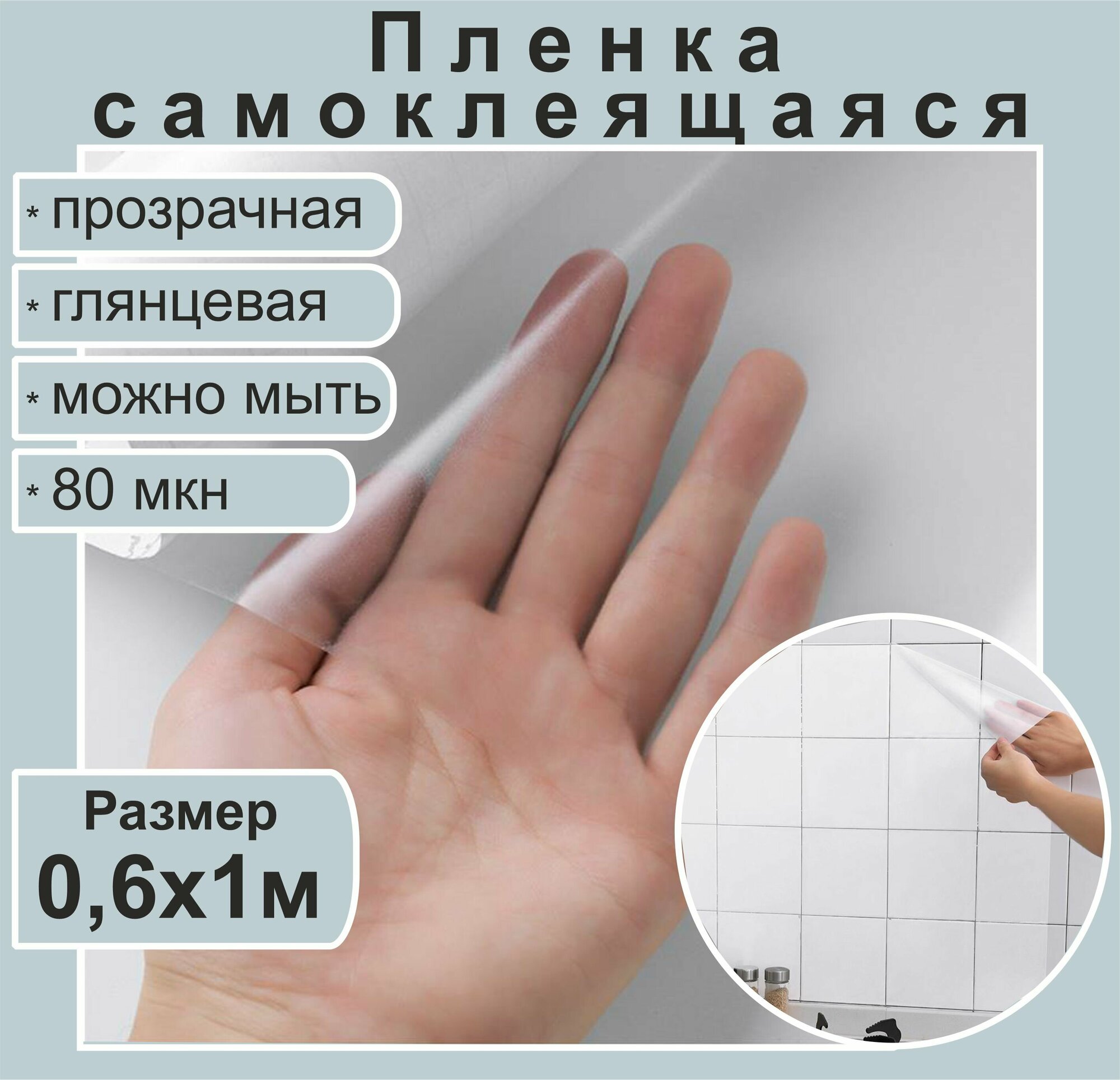 Купить Самоклеящаяся прозрачная пленка для мебели, для дизайна и интерьера. Глянцевая, 80 мкн. 0,6х1 метр.