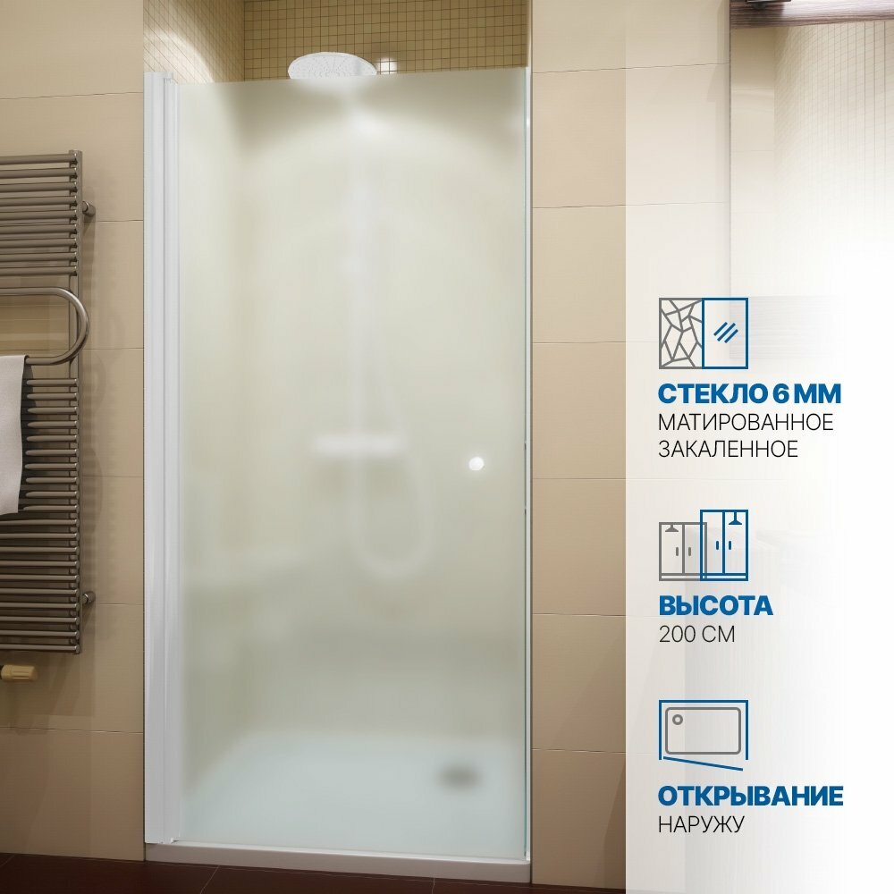 Дверь в душевую нишу GWMPKB020D601 80x200 см, цвет фурнитуры белый матовый, цвет стекла матовый, стекло закаленное 6 мм