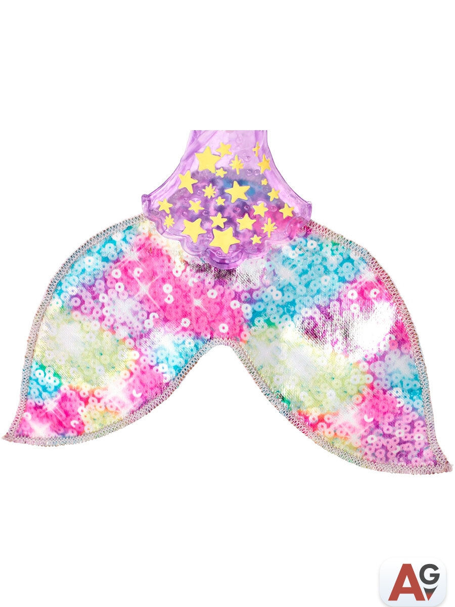 у куклы подвижные части тела, световые и двигательные функции хвоста, украшенный блестками плавник, волосы можно расчесывать и делать различные прически, в комплект входит 3 батарейки AG13 (LR44)