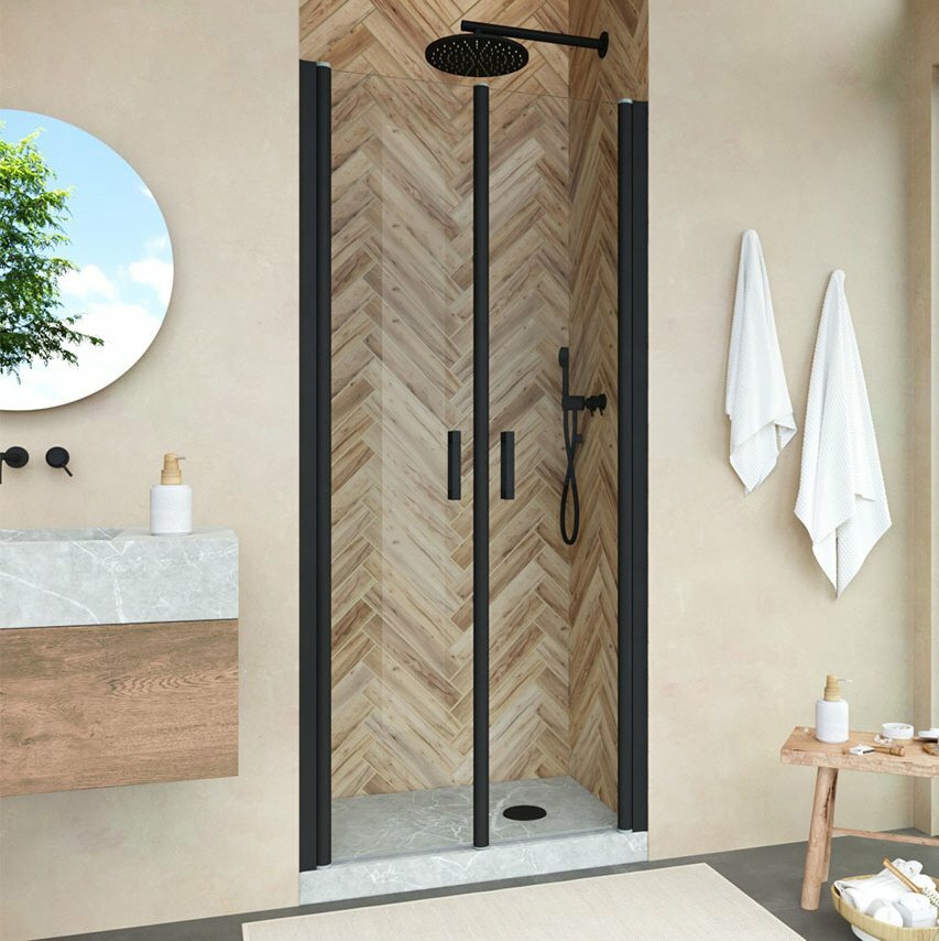 Vegas Glass Душевая дверь в нишу Vegas Glass E2P Novo 90 02М 01 профиль черный матовый, стекло прозрачное интересное: