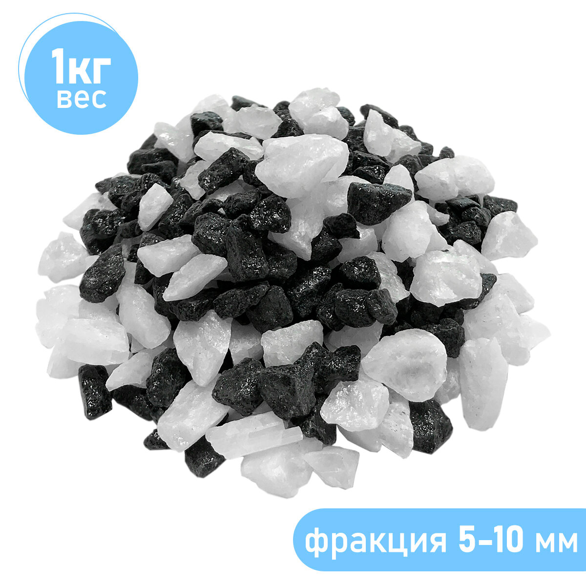 Купить Натуральный грунт для аквариума террариума, для суккулентов и растений, Zoo One, природный материал, "Чёрный+кварц", (фракция 5-10 мм) 1 кг,