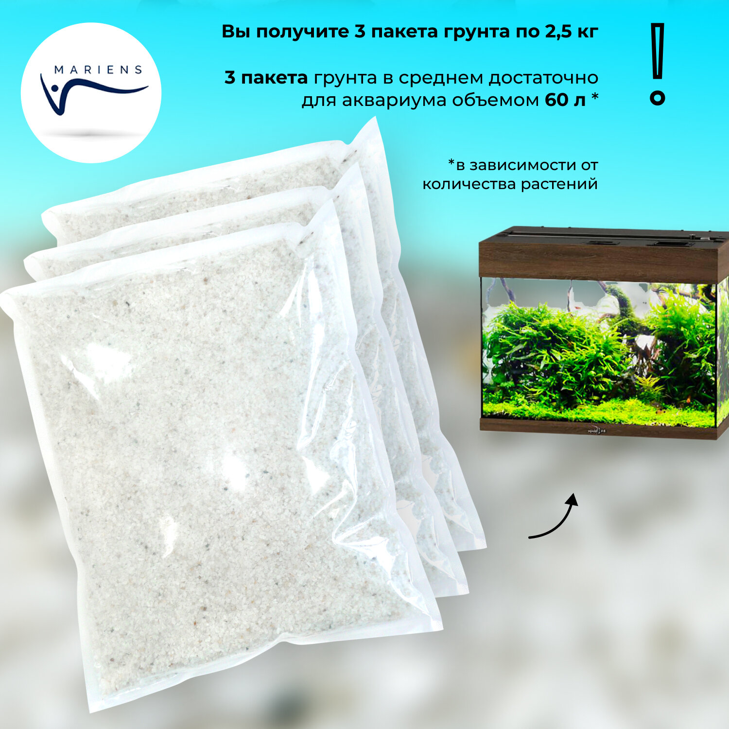 Грунт для аквариума природный натуральный MARIENS "Мальдивский песок", естественный светлый, 7,5 кг, размер фракции: 0,1-0,4 мм
