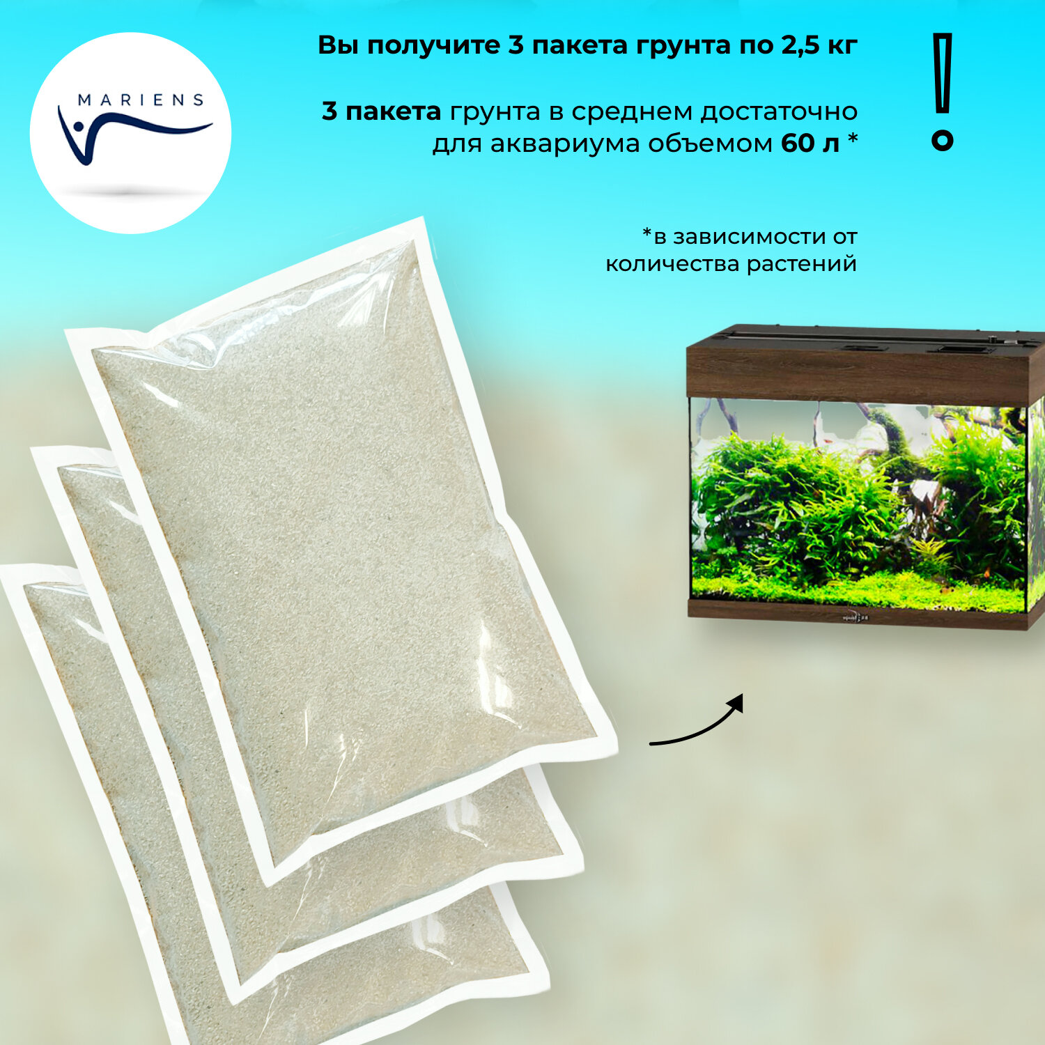 Грунт для аквариума природный натуральный MARIENS "Мальдивский песок", естественный светлый, 2,5 кг, размер фракции: 0,1-0,4 мм