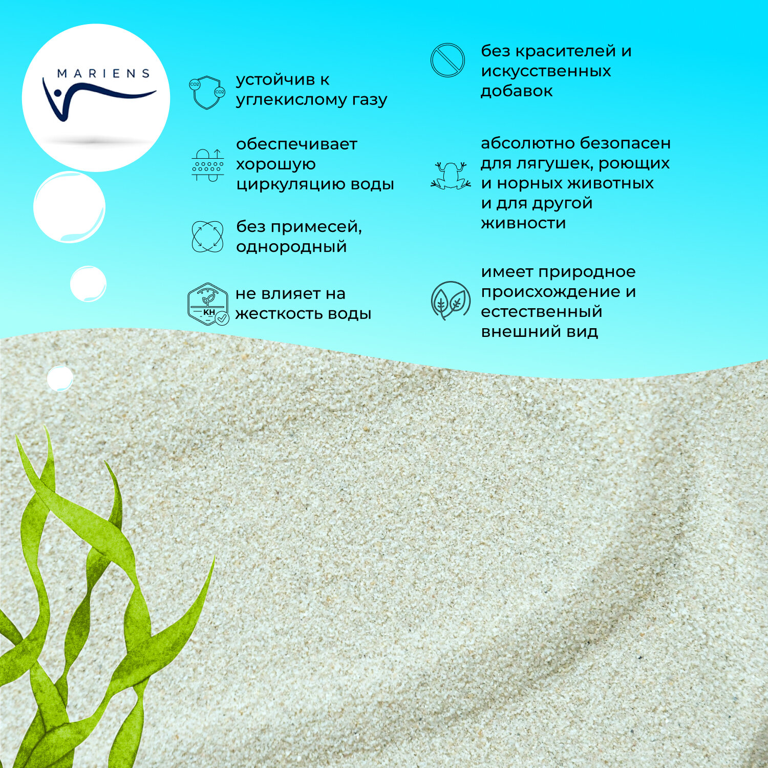 Натуральный грунт MARIENS "Песок Шампань", естественный светлый, 2,5 кг, размер фракции: 0,4-0,8 мм - для аквариума, природный