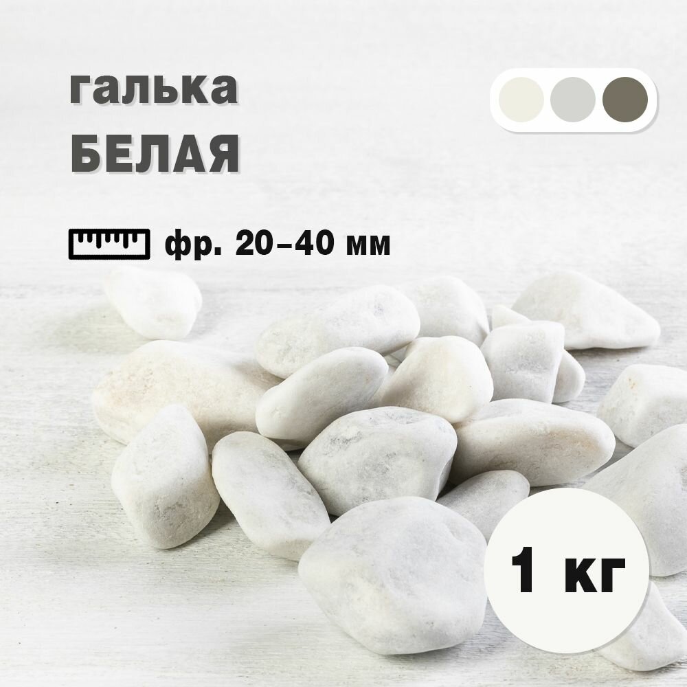 Камень декоративный Галька белая фракция 20-40 мм 1 кг. Грунт для аквариума (318) интересное: