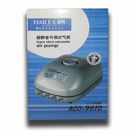 Купить Аквариумный бесшумный компрессор HAILEA ACO-9610 с регулятором потока воздуха. Для коптилен, аквариума и пр.