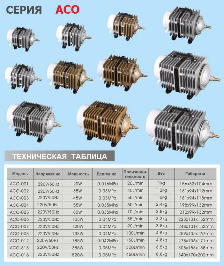Компрессор для аквариума поршневой ACO 002 Производительность 40 литров в минуту интересное: