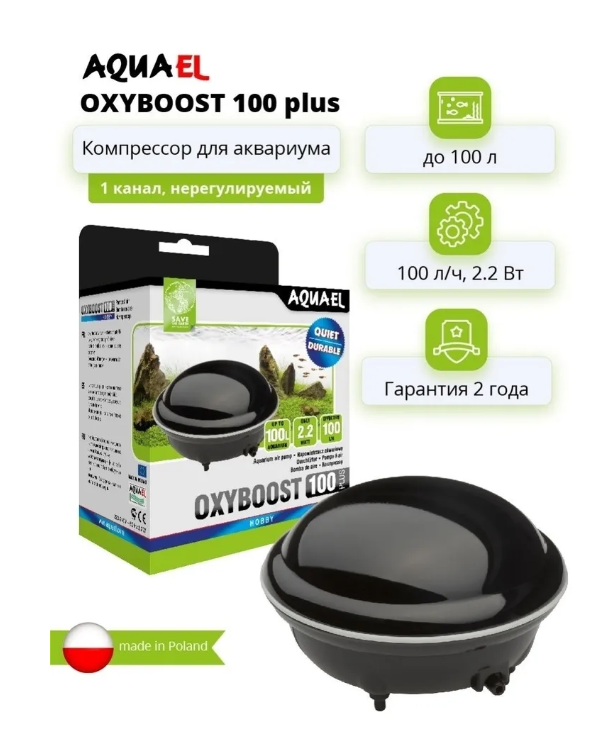Компрессор AQUAEL OXYBOOST 100 plus для аквариума до 100 л (100 л/ч, 2.2 Вт, 1 канал, нерегулируемый)