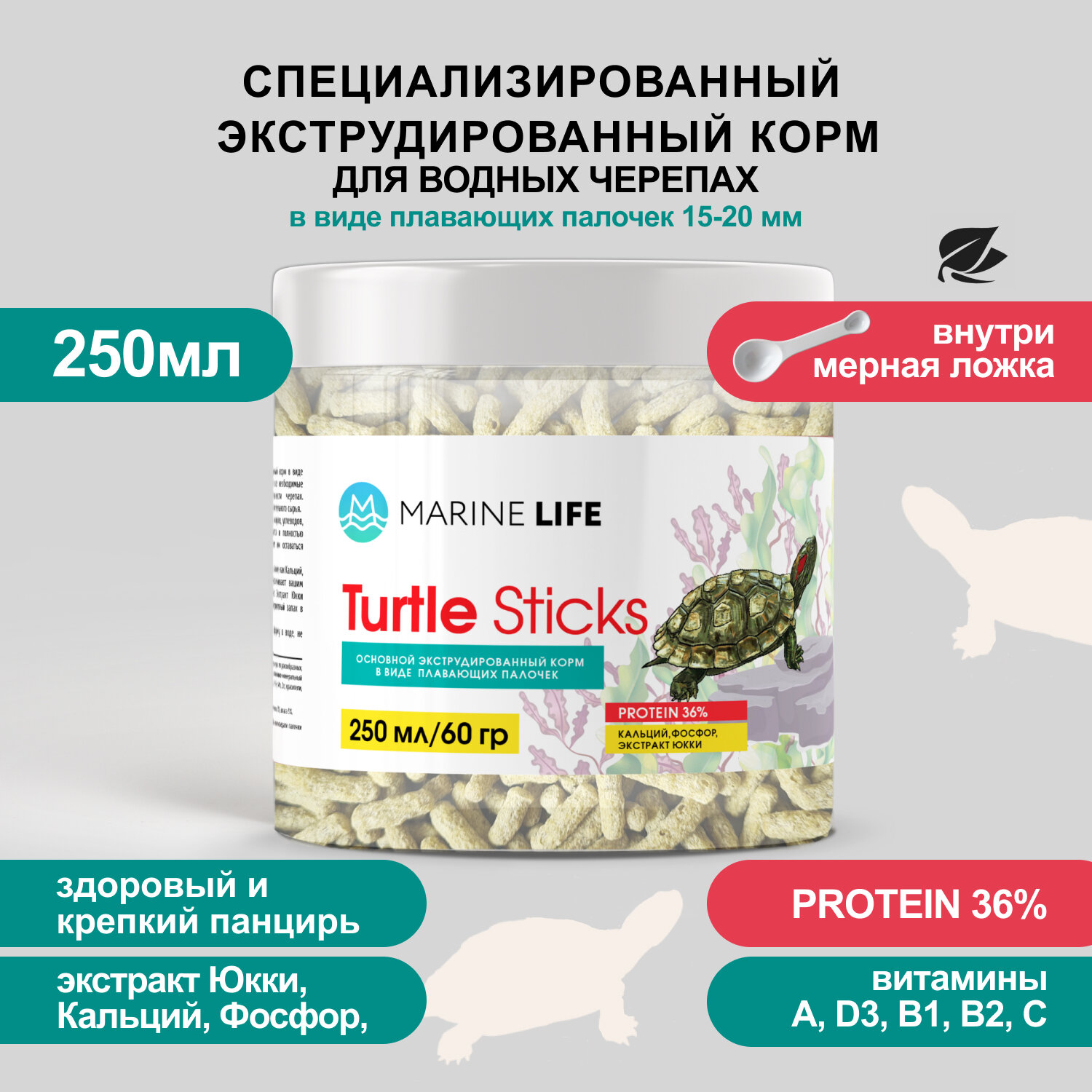 Корм Marine Life "Turtle Sticks", для черепах, сухой, палочки, 60г, банка 250мл