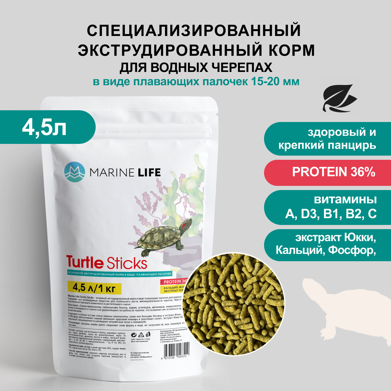 | Дополнительная информация | Кормить черепах несколько раз в день так, чтобы они съедали палочки полностью в течение нескольких минут. |