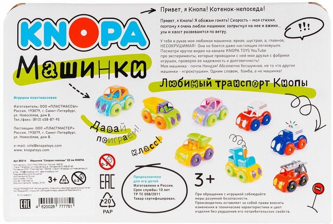 Машинка Knopa Скорая помощь, 22 см (86214)