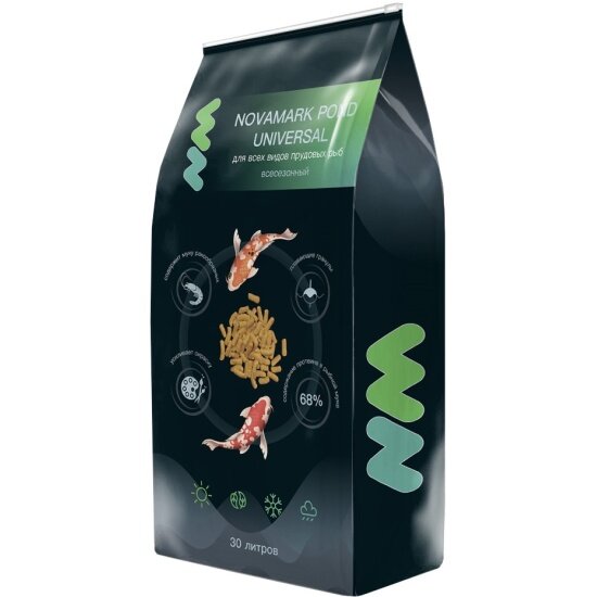 Корм Novamark POND UNIVERSAL для всех видов прудовых рыб всесезонный 30л 3,6кг интересное: