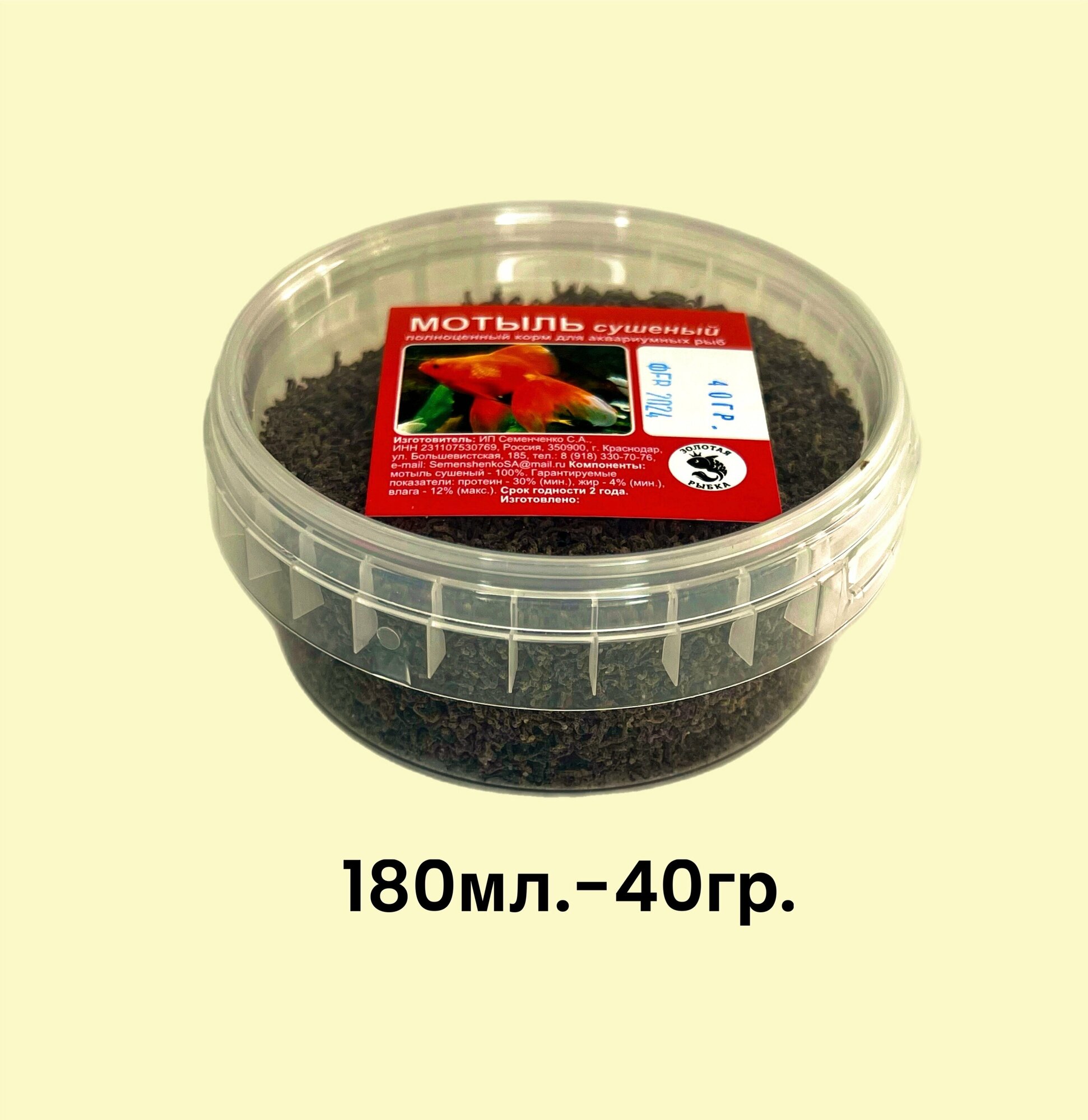 | Ингредиенты | мотыль сушеный 100% |