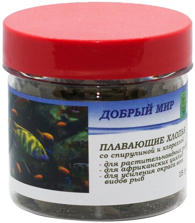 Корм для африканских цихлид, Добрый мир, для малавийских цихлид, хлопья со спирулиной, 15 гр интересное: