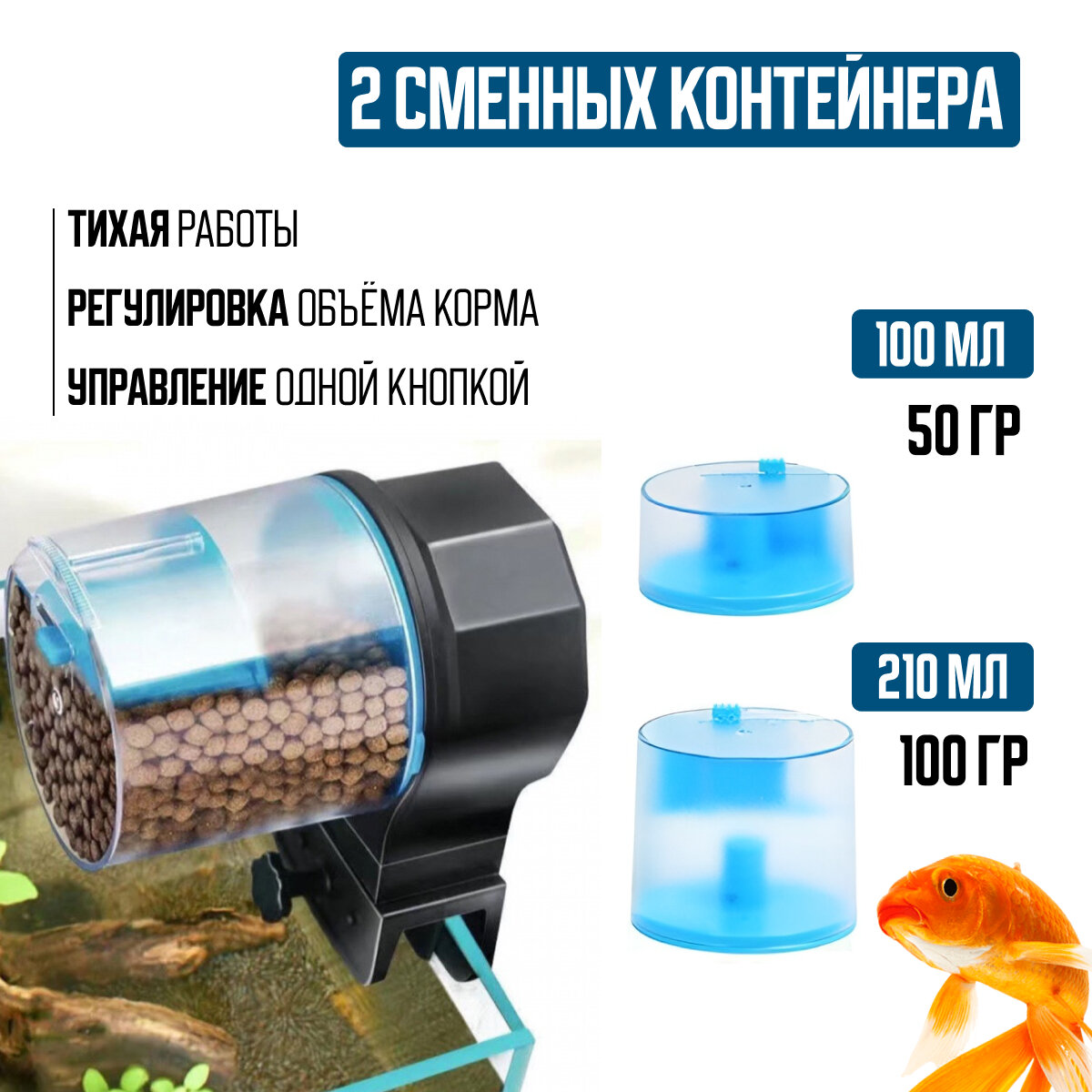| Дополнительная информация | Два режима работы 12 и 24 часа. В комплекте 2 емкости для корма 100мм и 50мм. |