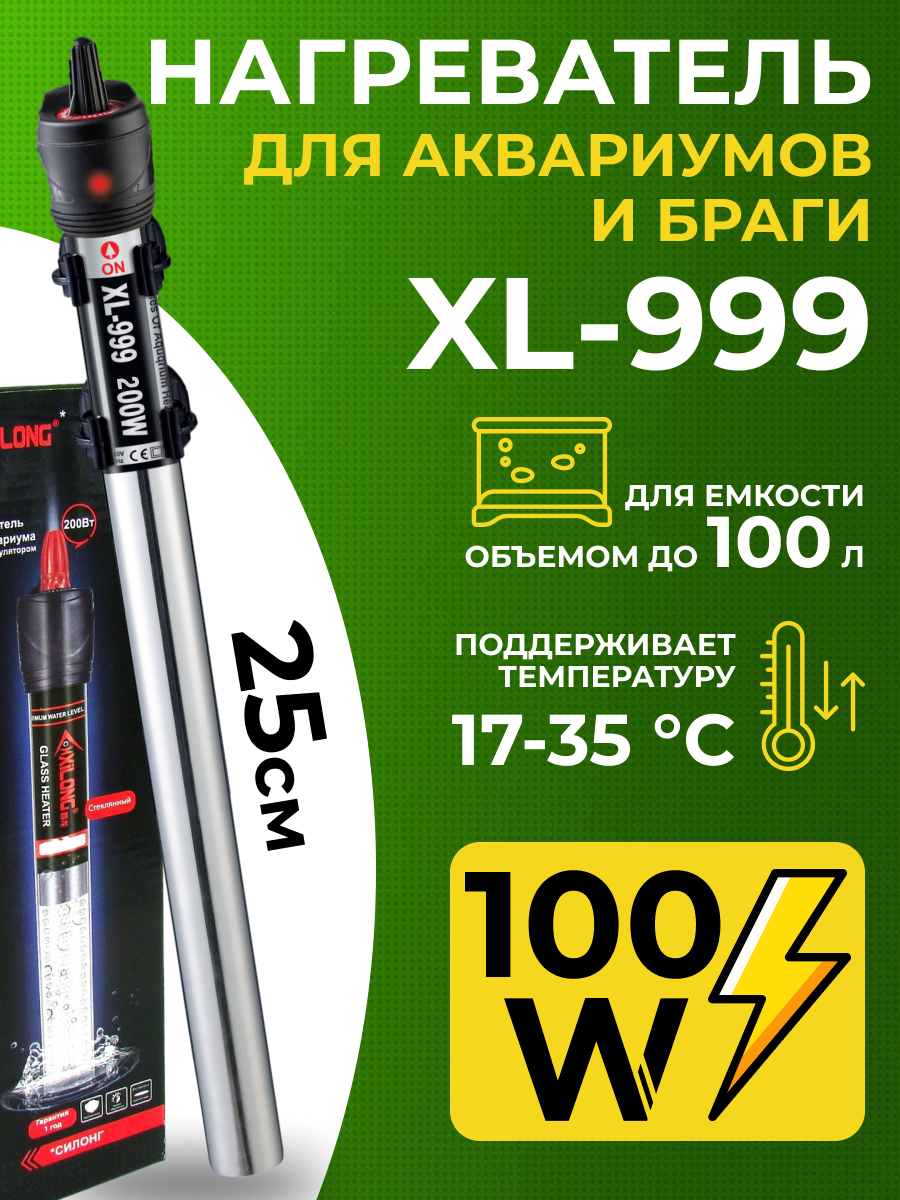 Нагреватель для воды, браги, аквариума, металлический 100 Вт Xilong XL-999 с терморегулятором интересное: