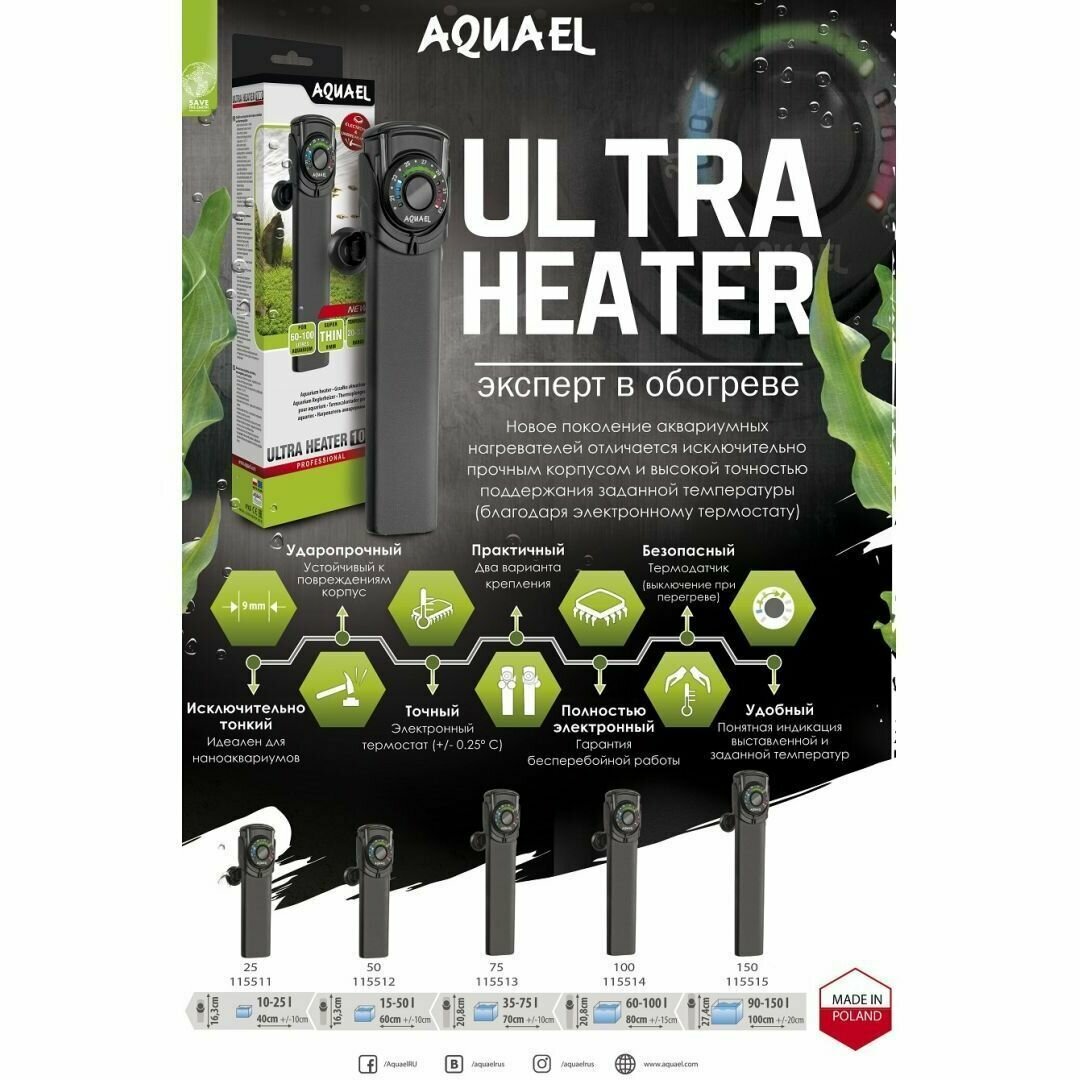 Нагреватель Aquael Ultra Heater 50Вт интересное: