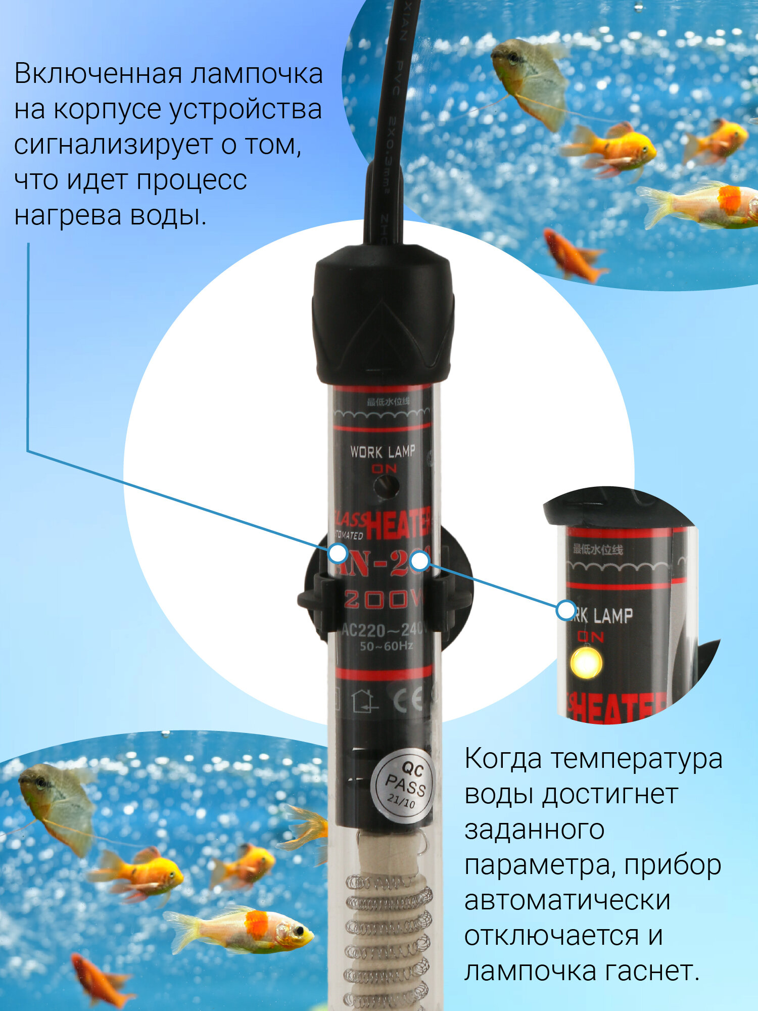 | Особенности | на присосках / подходит для морской воды / регулировка температуры / светодиодный индикатор |