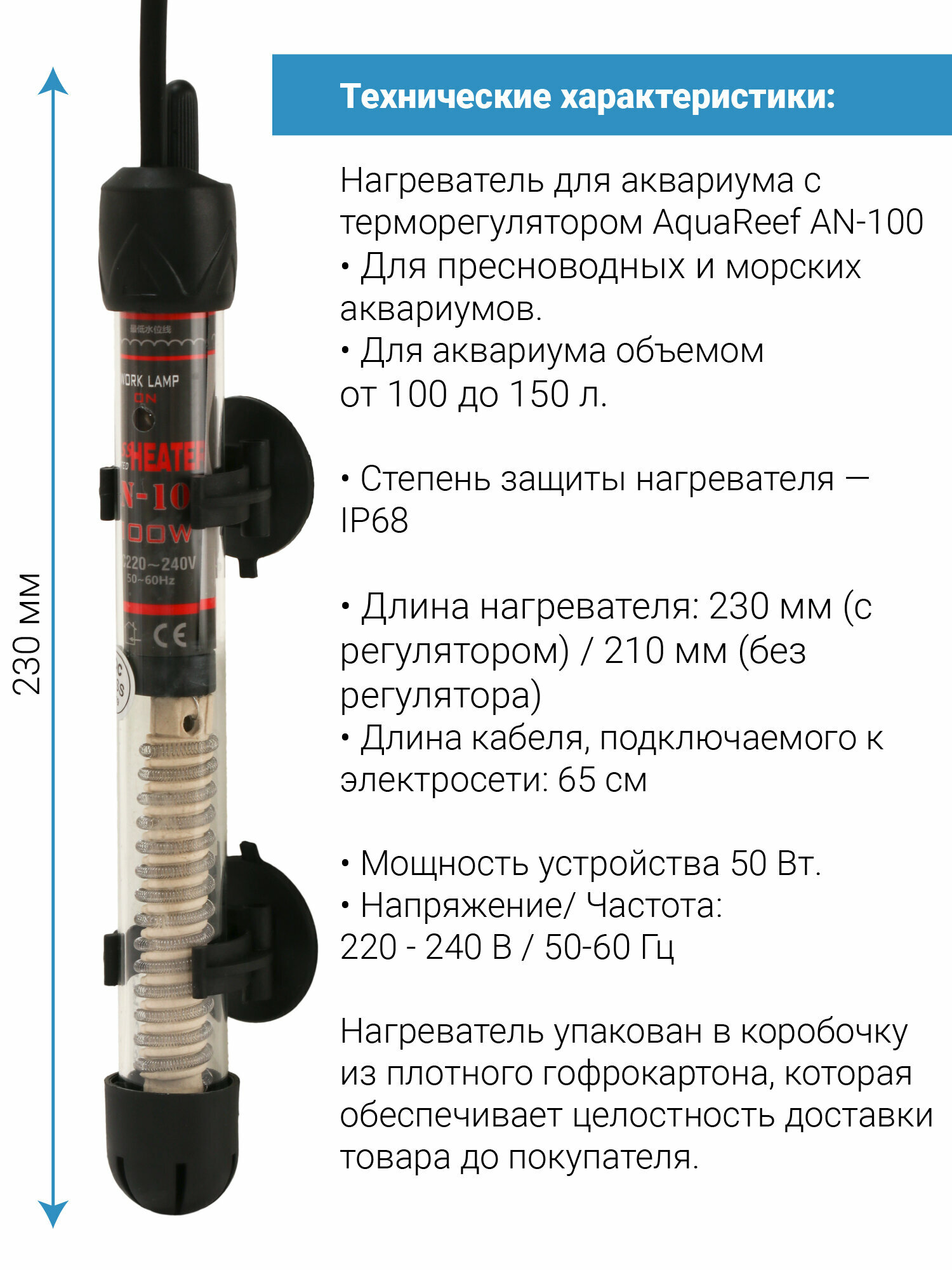 Нагреватель Aqua Reef AN-100 Вт для аквариума 100 - 150 л (стеклянный, регулируемый) интересное: