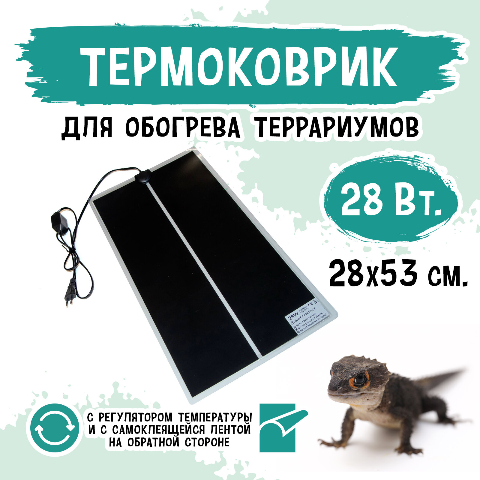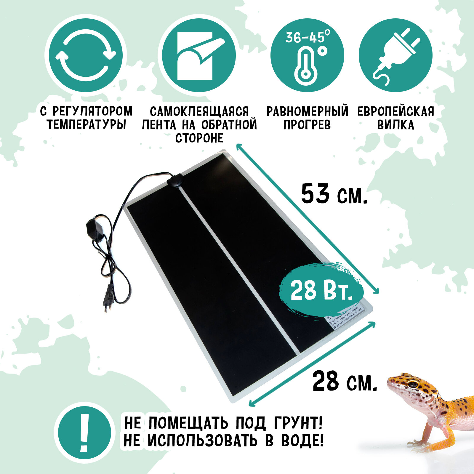 Купить Термоковрик 28Вт с диммером MCLANZOO, самоклеющийся, чёрный, 53x28см, кабель 1.73м