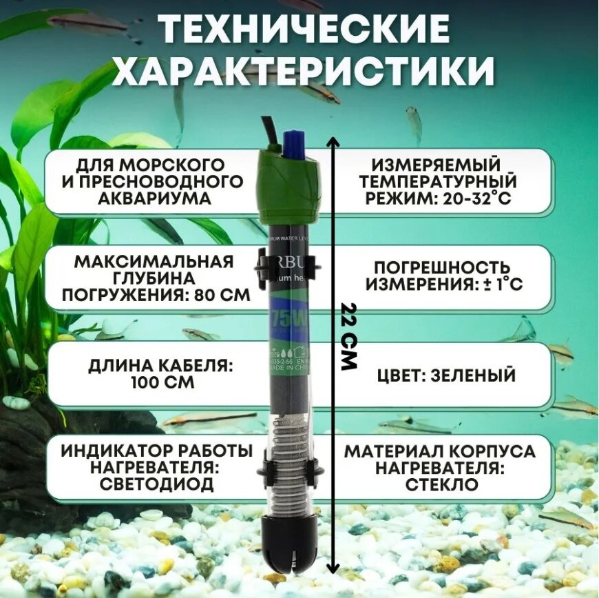 СохранитьТерморегулятор для аквариума BARBUS HEATER 003 75 Вт интересное: