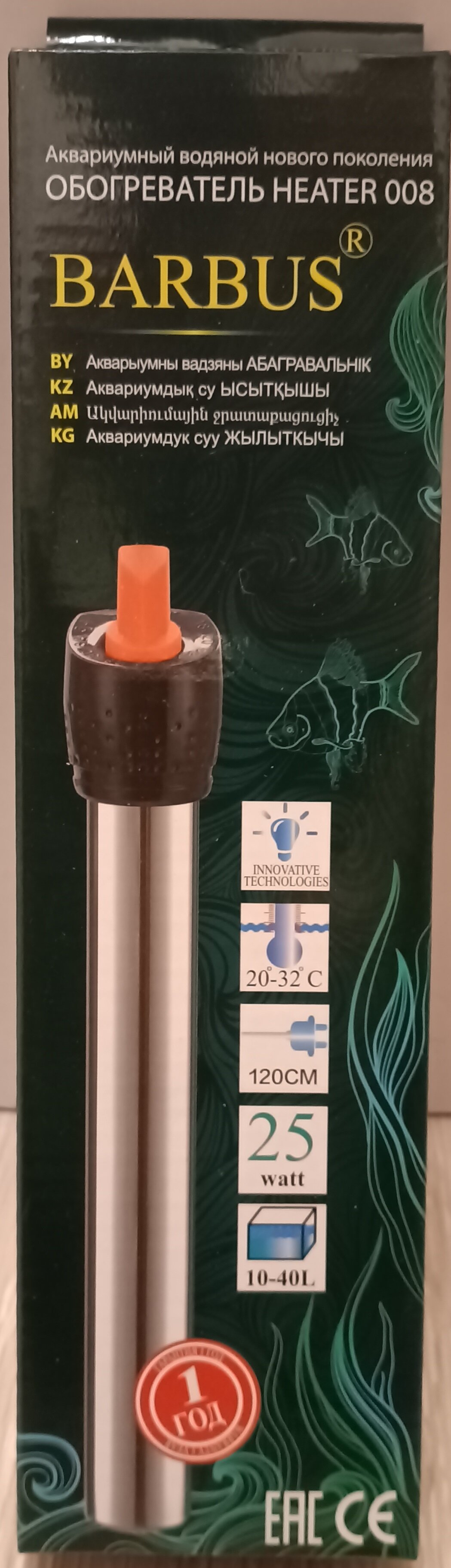 Купить Обогреватель терморегулятор BARBUS HEATER 008 25watt для аквариума 10-40л метал 120см электрошнур