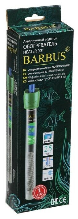 Ниже Вы можете прочитать отзывы на Обогреватель терморегулятор стекло 25ватт, для аквариума 10-40л, 100см электрошнур HEATER 001 BARBUS, ознакомится с подробными характеристиками, посмотреть интересные обзоры и фотографии на Обогреватель терморегулятор стекло 25ватт, для аквариума 10-40л, 100см электрошнур HEATER 001 BARBUS.