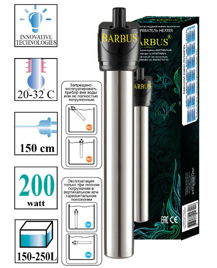 Нагреватель-терморегулятор нового поколения металлический BARBUS (200 Вт)