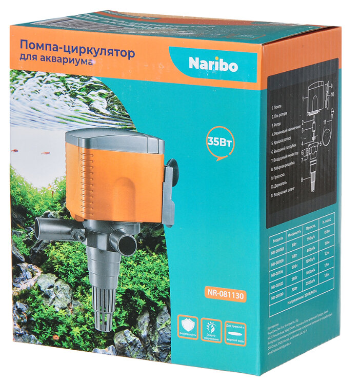 Помпа-циркулятор для аквариума Naribo максимальная высота подъема 0,8 м, 8 Вт, 750 л|ч