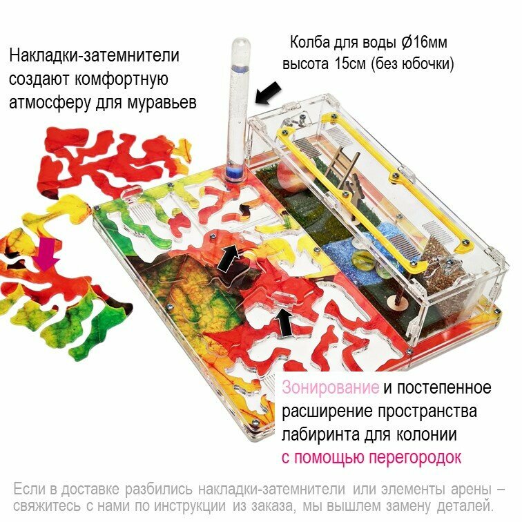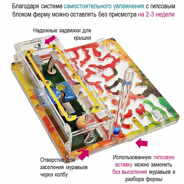 | Дополнительная информация | Муравьи в комплект НЕ входят, но их можно приобрести у нас по инструкции из заказа |